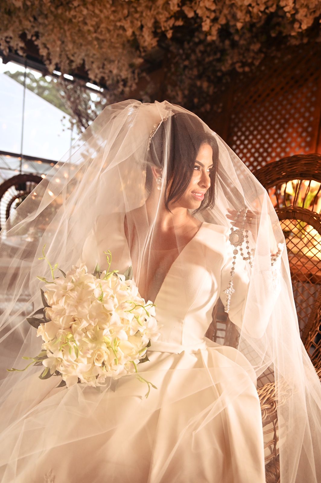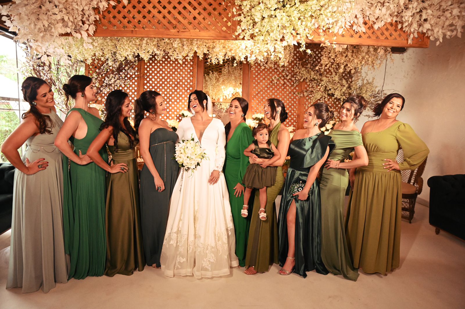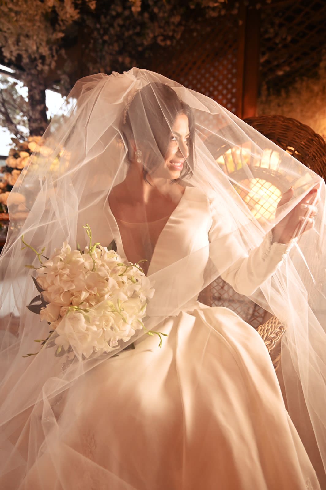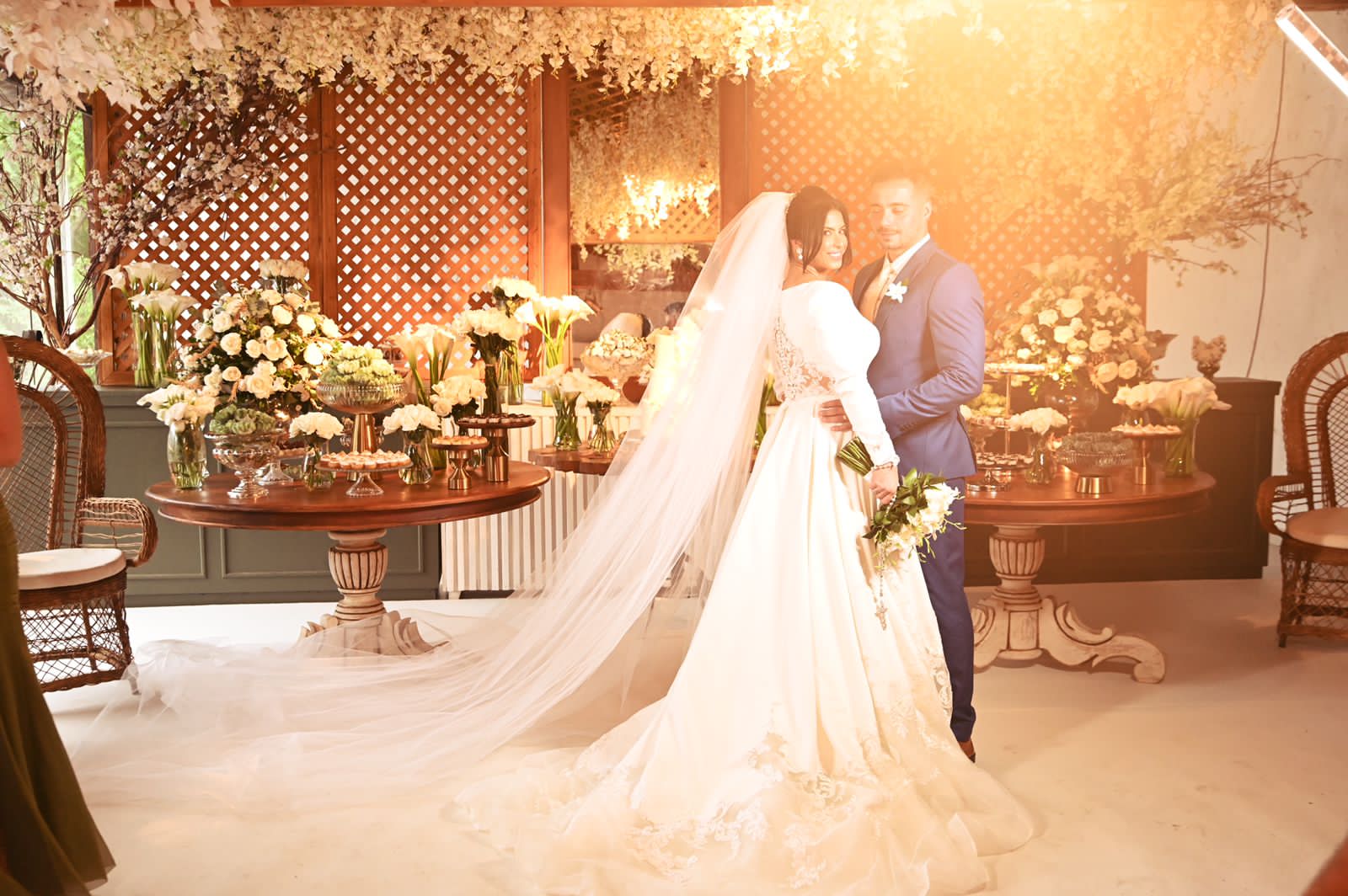A noiva escolheu um vestido de noiva da renomada Loja La Modelista, que refletiu sua personalidade minimalista e ao mesmo tempo, proporcionou uma elegância digna de uma rainha. O destaque ficou por conta do lindo trabalho em renda nas costas do vestido, que adicionou um toque de romantismo e sofisticação à sua aparência. Mariana brilhou como uma estrela em seu caminho rumo ao altar.