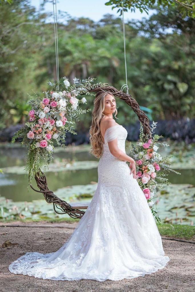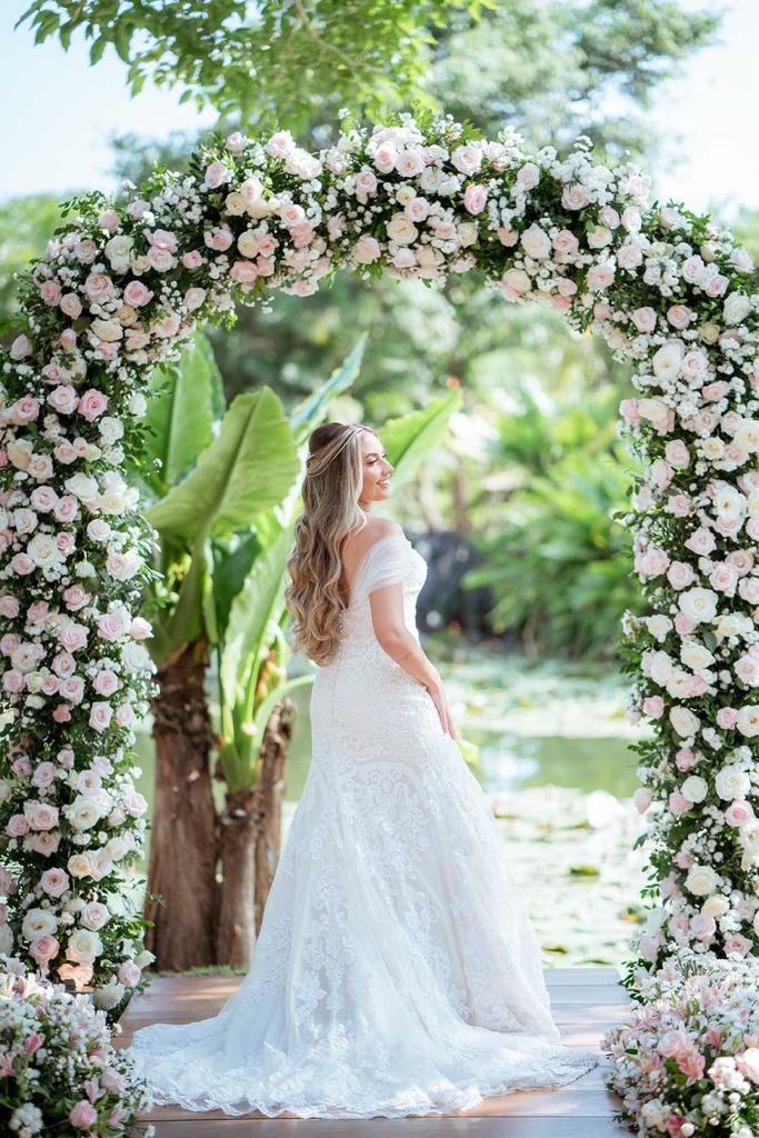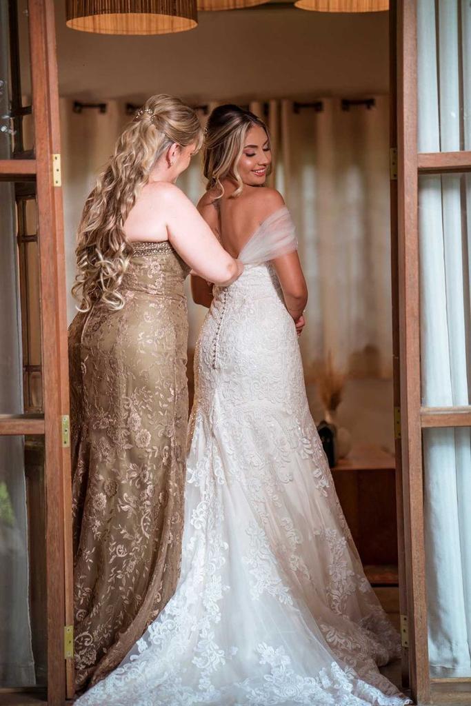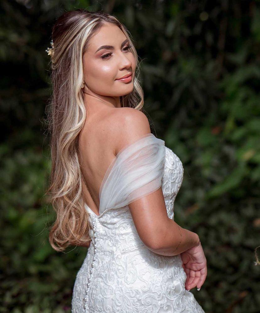 E o que dizer da beleza encantadora da noiva? Larissa estava belíssima em seu vestido de noiva La Modelista, um modelo todo rendado super delicado e com uma manga diferenciada, que trouxe ainda mais delicadeza e romantismo. Um vestido que destacou ainda mais a sua beleza e complementou seu look maravilhoso, amamos!