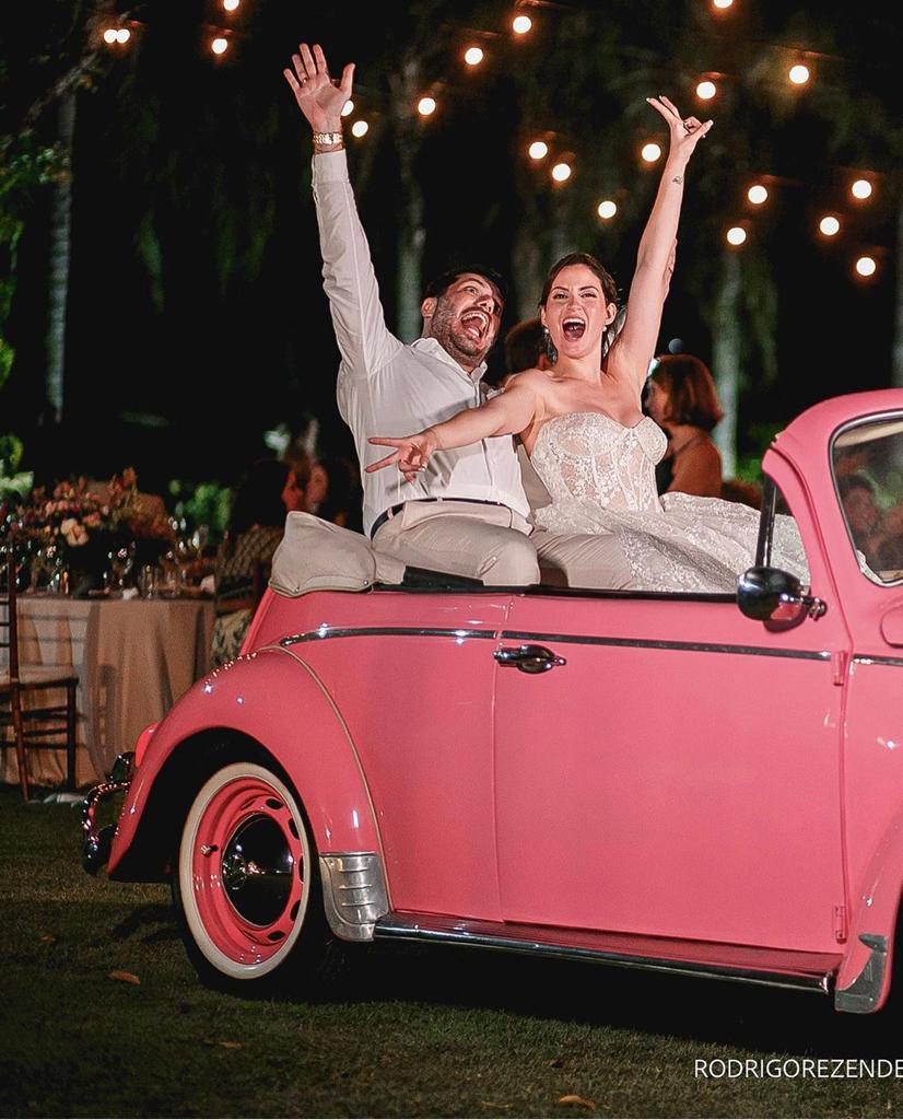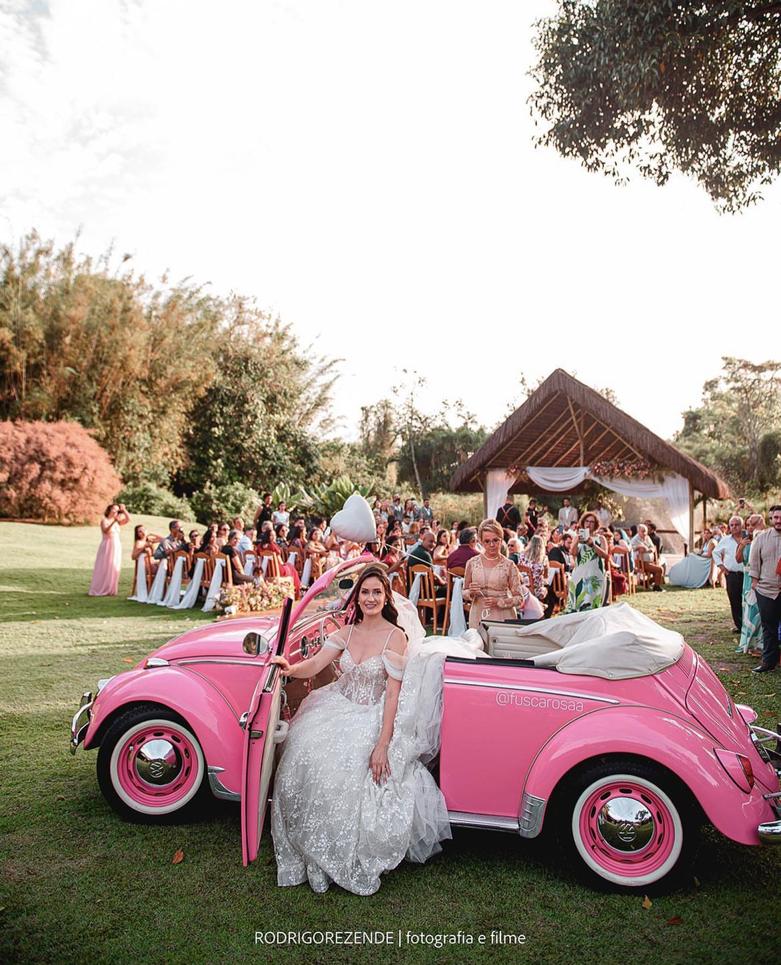 Vamos começar a falar de quanto ficamos apaixonadas por esse fusca cor de rosa e por essas fotos maravilhosas. Memorável e inspiradora, foram as definições que encontramos para a cerimônia da Nathalia e do Mario.