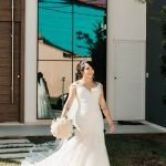 Ela optou por um vestido La Modelista riquíssimo de detalhes em renda e uma linda cauda que trouxe ainda mais elegância ao look. As rosas brancas do buquê complementaram toda ideia passada pela noiva, trazendo ainda mais beleza. Uma verdadeira princesa!