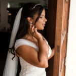 O vestido de noiva escolhido pela Amanda foi um modelo da La Modelista perfeito para cerimônias mais românticas, como essa. Uma peça com lindo trabalho em renda e manga super romântica, com destaque ao caimento estilo sereia que realçou ainda mais as curvas dessa noiva belíssima!