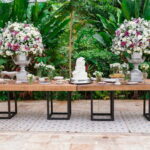 A decoração estava impecável e apaixonante, com direito a um altar encantador e elegante que parecia foto de revista. A festa foi ao ar livre no Solar de Gração, um lugar encantador conhecido por realizar os mais lindos sonhos das noivas.