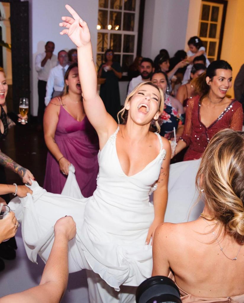 E um dos momentos mais esperado por cada uma, sem dúvidas é a escolha do vestido de noiva. A Leticia optou por um modelo perfeito La Modelista. Uma peça minimalista, “divertida” (assim que ela descreveu esse encantador vestido) e elegante. E completou o look com um penteado belíssimo, grinalda na lateral e maquiagem perfeita da @maquiagemtatiheckert.