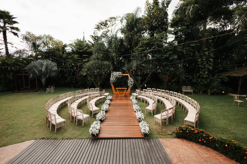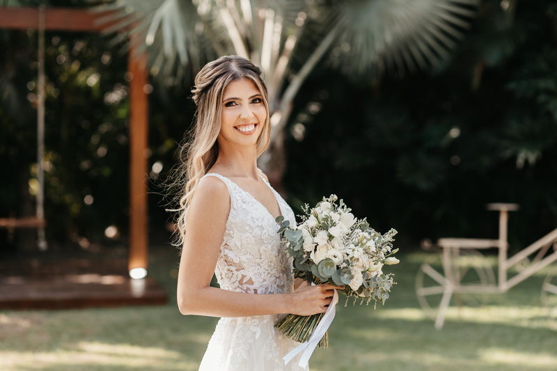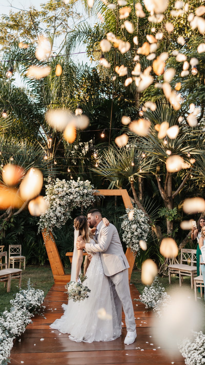 As cores vibrantes das flores, a vegetação exuberante e o céu aberto criam um ambiente romântico e acolhedor, repleto de energia positiva. Assim foi o casamento do casal Liliane e Diego, que optaram por uma cerimonia encantadora no Vale dos sonhos.