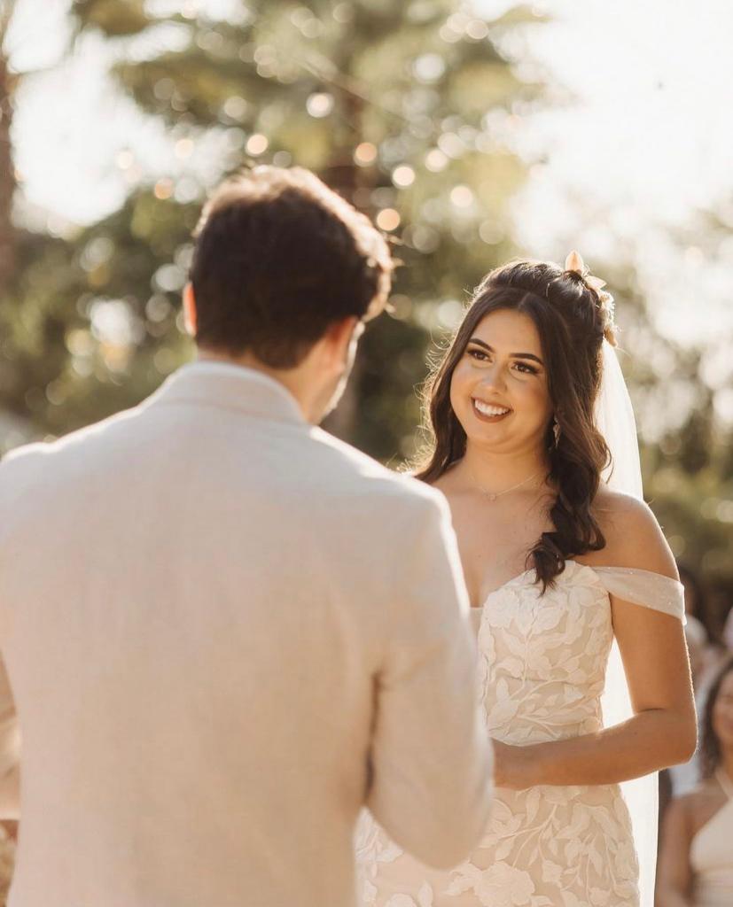 O casal optou por uma cerimônia ao ar livre no Vale dos Sonhos, com detalhes apaixonantes que se eternizaram na memória de todos. É possível ver esse amor transbordando pelos olhares do casal Thayná e Gabriel.