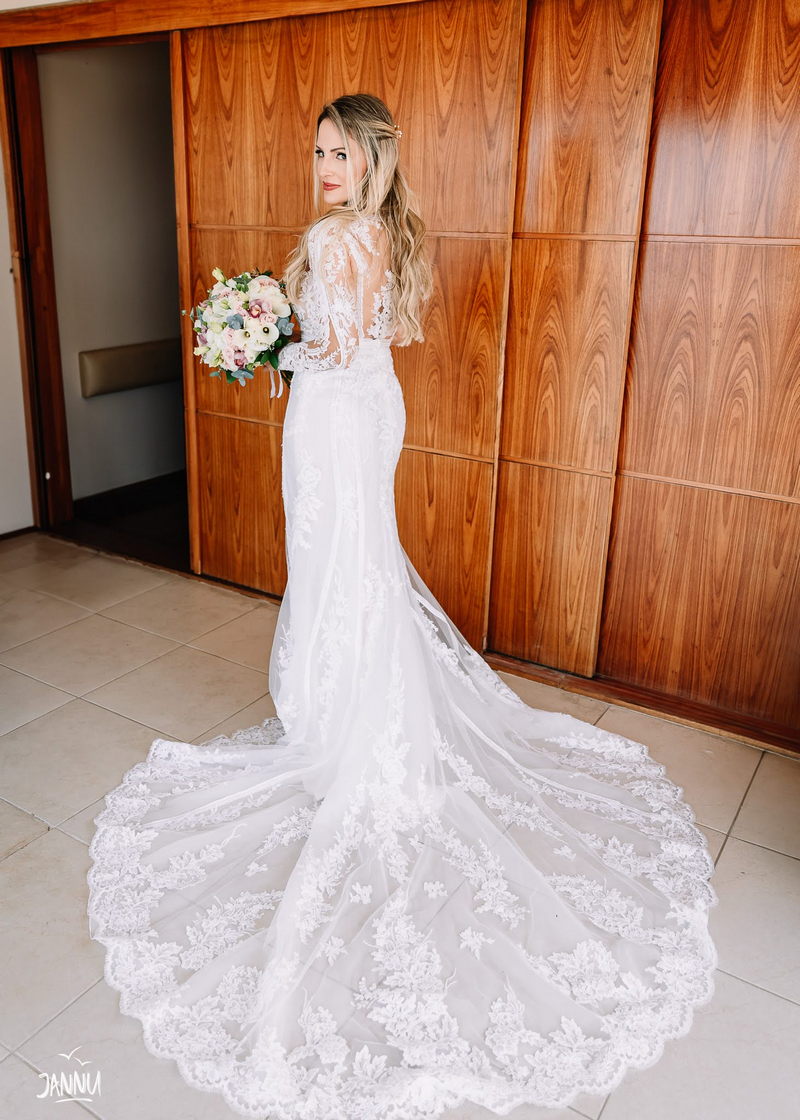 A Paula optou por um belíssimo vestido de noiva La Modelista. Um modelo todo trabalhado na mais delicada renda, com decote frontal perfeito e detalhes em transparência encantador. O vestido maravilhoso foi complementado pela linda maquiagem da talentosa @talita_dias, amamos todo o look.