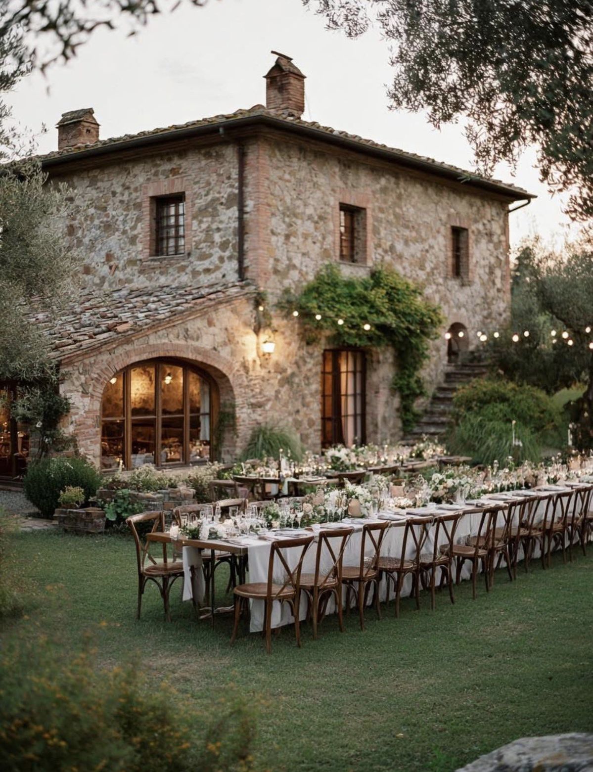 Espaços ao ar livre, jardins, vinhedos e áreas com vista para a natureza são ideais para esse tipo de celebração. Quando há arquitetura, ela costuma trazer um charme histórico: construções em pedra, fachadas com textura, portas antigas e pátios internos são muito bem-vindos.