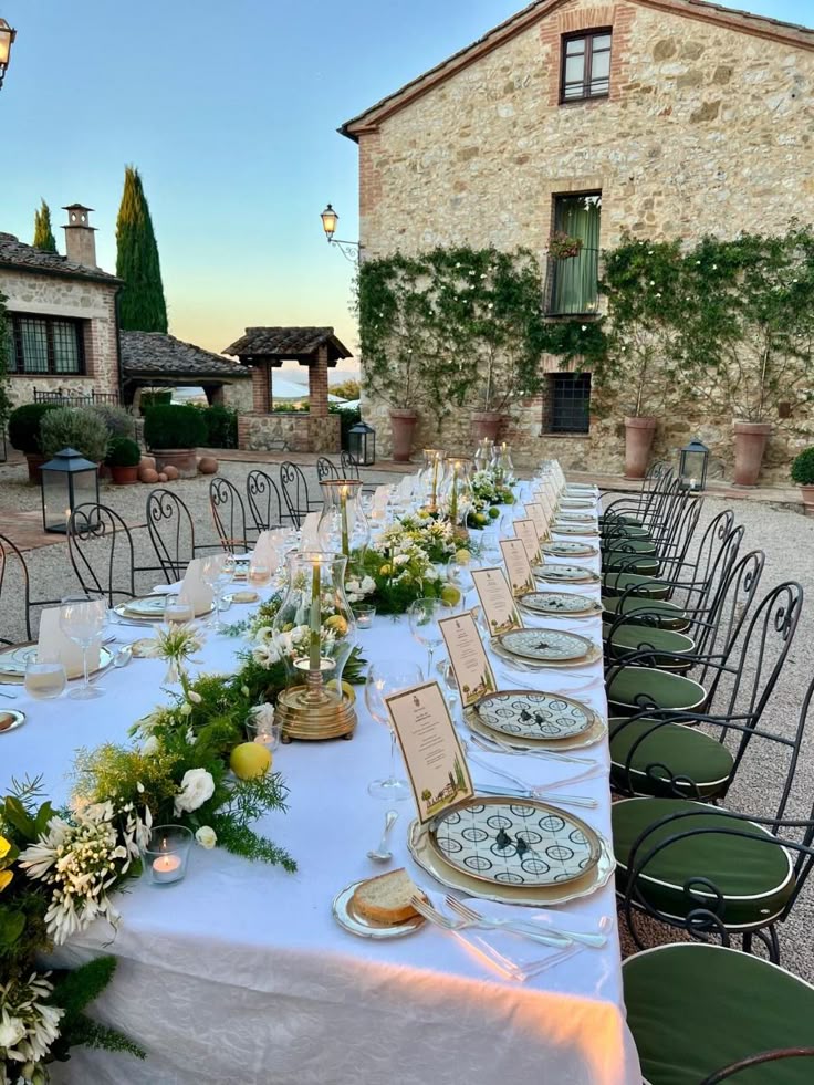 Já a paleta de cores do casamento ao estilo italiano costuma seguir uma linha natural e sofisticada. Tons terrosos, verde oliva, branco e nuances de bege são frequentemente combinados com toques sutis de dourado. Essa base neutra reforça a elegância sem esforço, sem a necessidade de contrastes fortes ou cores vibrantes.