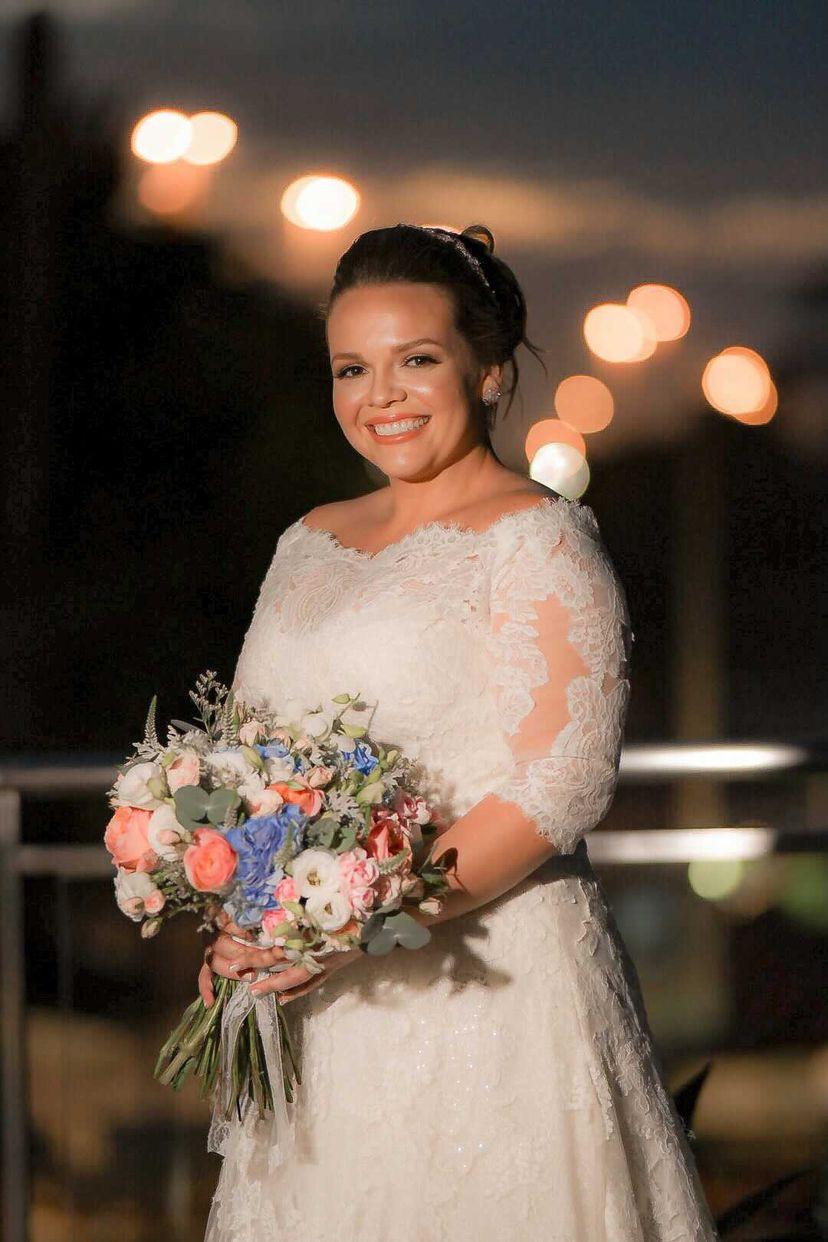 Algumas pessoas tem o poder de demonstrar tudo pelo olhar e o sorriso, e olhando as fotos temos certeza que o grande dia da Letícia foi fantástico! Ela se casou com seu vestido de noiva La Modelista, um modelo com detalhes magníficos em renda, decote canoa super em alta e romântico.