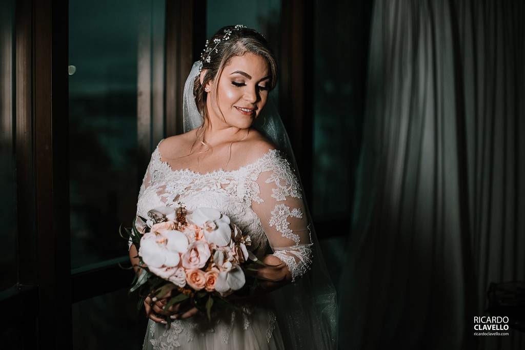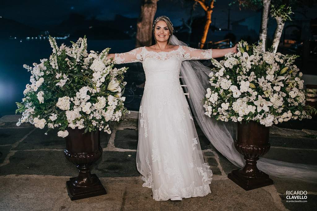 Ela estava deslumbrante e magnífica com o seu Vestido de Noiva da La Modelista, um modelo clássico trabalhado em rendas e com um detalhe divino nos ombros. Um vestido feito para mulheres que sempre sonharam em brilhar nesse grande dia.