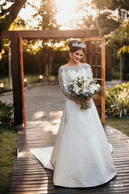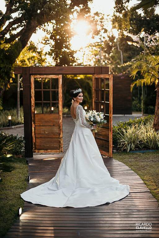 As cores do meu casamento foi branco e marsala. O meu vestido foi da Pronoivas, o meu vestido maravilhoso era para ser meu, somente uma noiva que o perfil do meu corpo caberia nele por ele ser muito pequeno, se não me engano iam desfazê-lo. Quando eu estava indo embora da loja, me informaram que tinha esse vestido guardado, não daria nada por ele pois na foto era muito simples, porém era de zibeline como eu queria. Quando experimentei percebi que era e o ideal, era o meu vestido. Ficou perfeito, sem palavras para expressar o quanto amo o meu vestido. Minha total inspiração foi Meghan Markle, o vestido dela era simples e o corte perfeito.