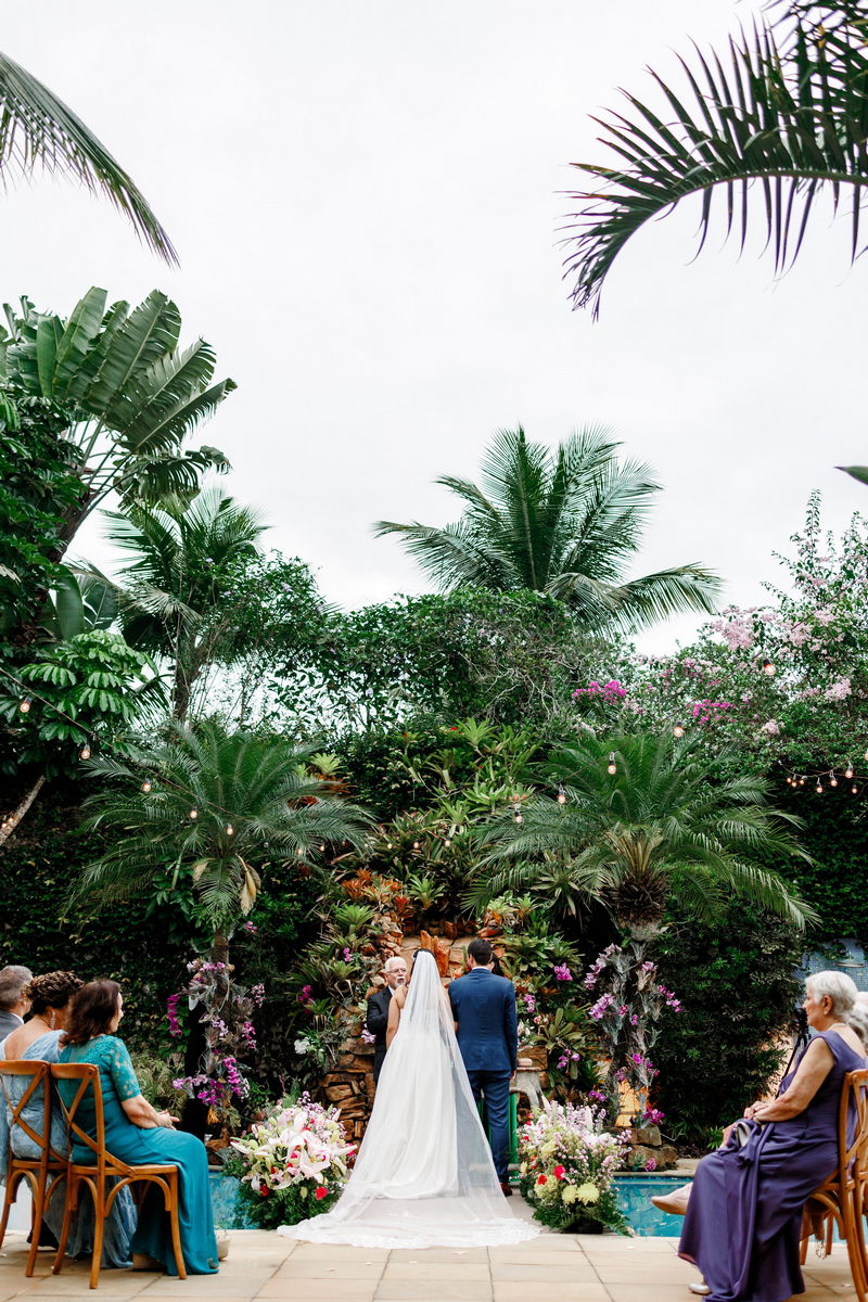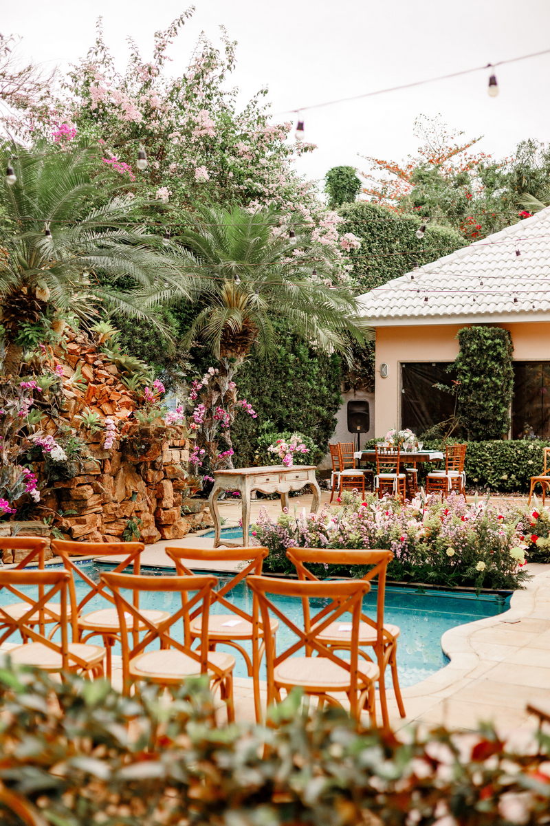 A escolha de um casamento em casa carrega em si uma beleza singular. Há algo genuinamente acolhedor em dizer o “sim” rodeado por paredes que ecoam memórias felizes. É como se cada tijolo, cada pedaço do jardim, cada móvel tivesse uma história para contar e testemunhasse a criação de uma nova narrativa de amor.