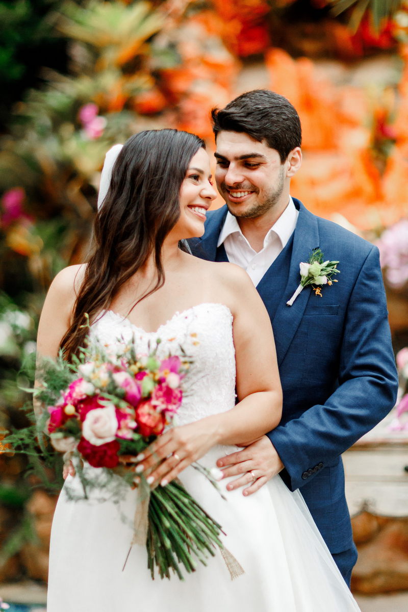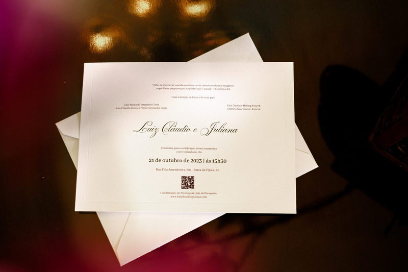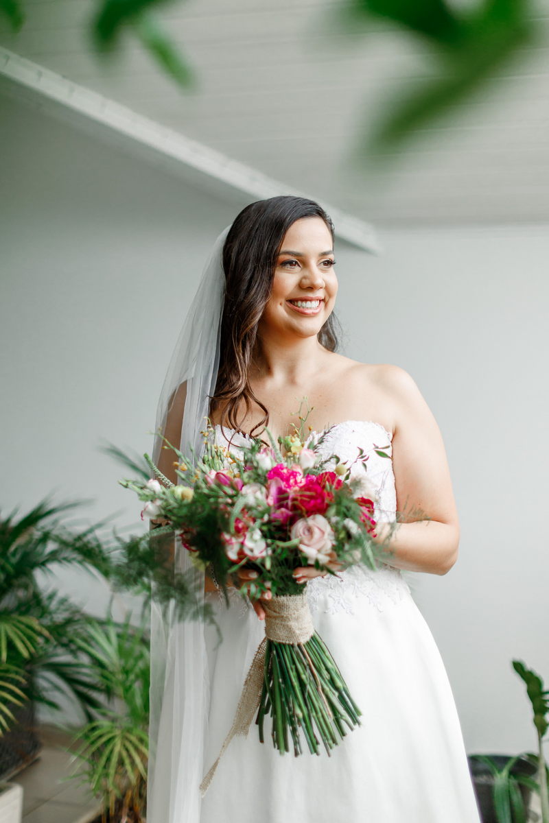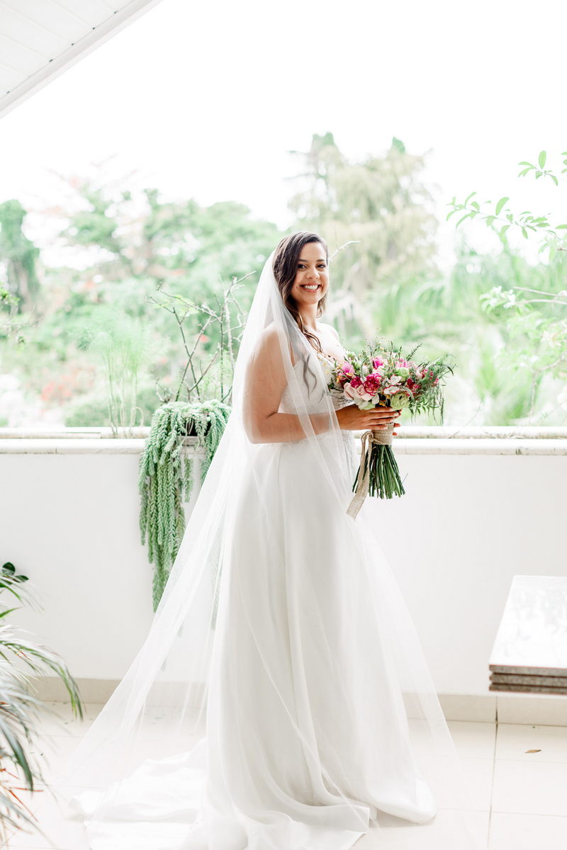 O destaque foi o encanto da noiva com seu deslumbrante vestido de noiva tomara que caia, uma verdadeira obra-prima da renomada loja de noiva La Modelista. O modelo, sofisticado e encantador, com belíssimo trabalho de renda no topo, enquanto a saia minimalista conferiu à Juliana uma elegância perfeita para a ocasião. A maquiagem realizada pela talentosa @maquiagemrj realçou a elegância natural da noiva de forma notável, combinando perfeitamente com a atmosfera íntima do casamento em casa.