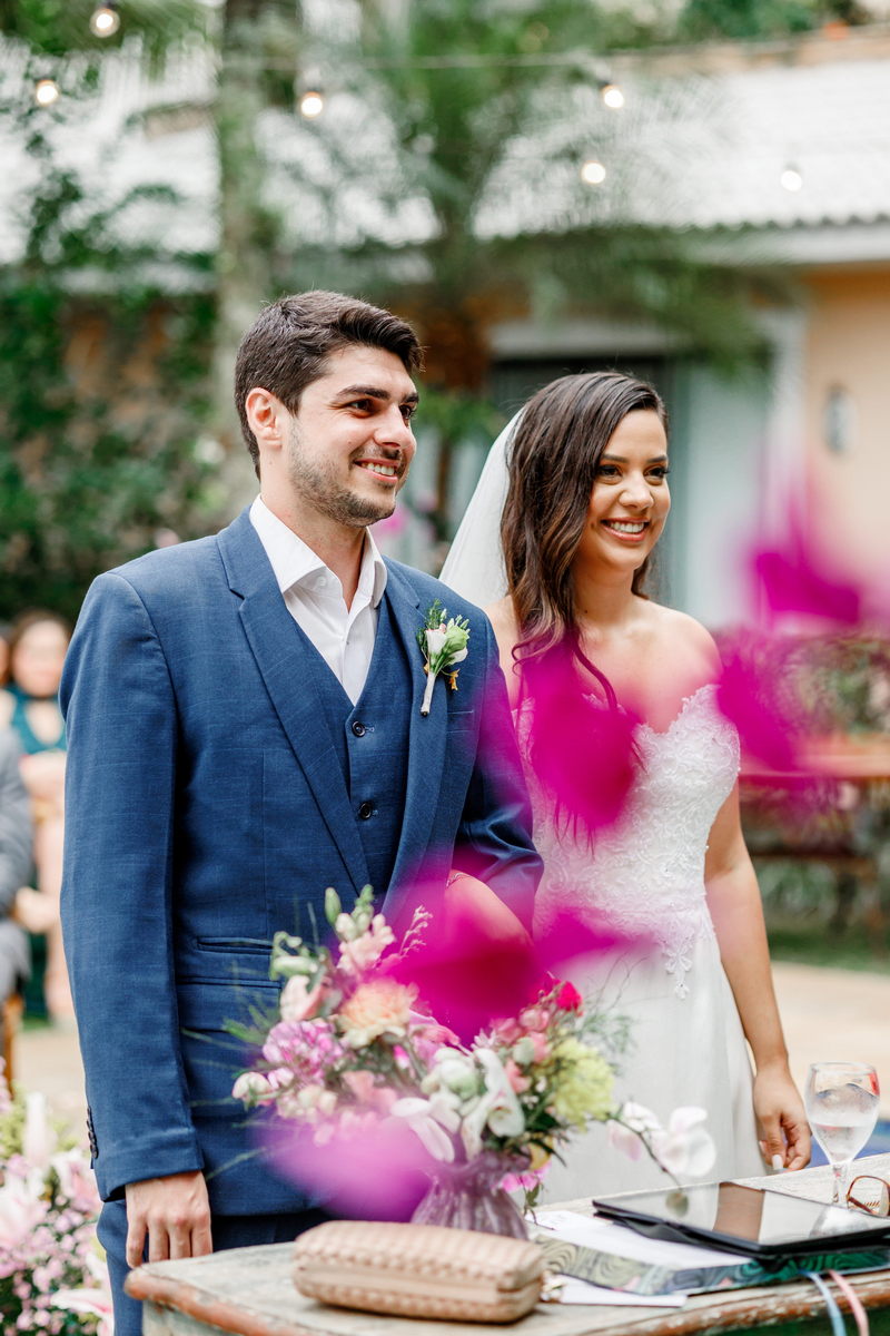 Em um cenário que transcendeu a tradição, o casal de hoje optou por selar seu amor na casa dos pais do noivo, proporcionando uma magia especial.