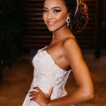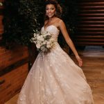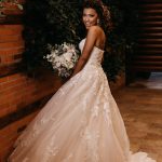 Ela se casou com vestido de noiva La Modelista, um modelo tomara que caia ao estilo princesa com muitos detalhes em rendas, divino! O look ficou ainda mais perfeito com seu maravilhoso sorriso!