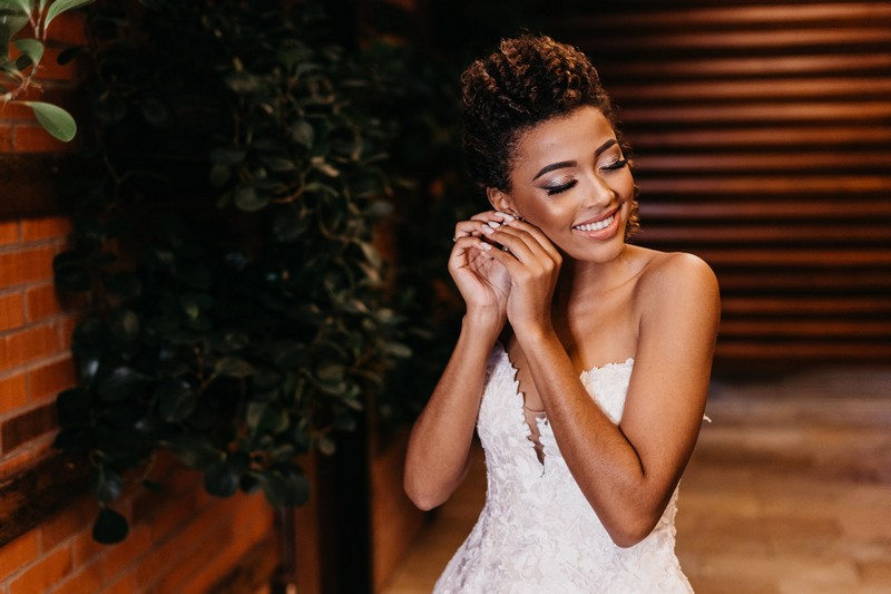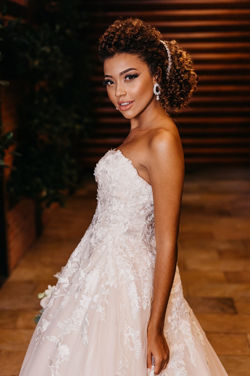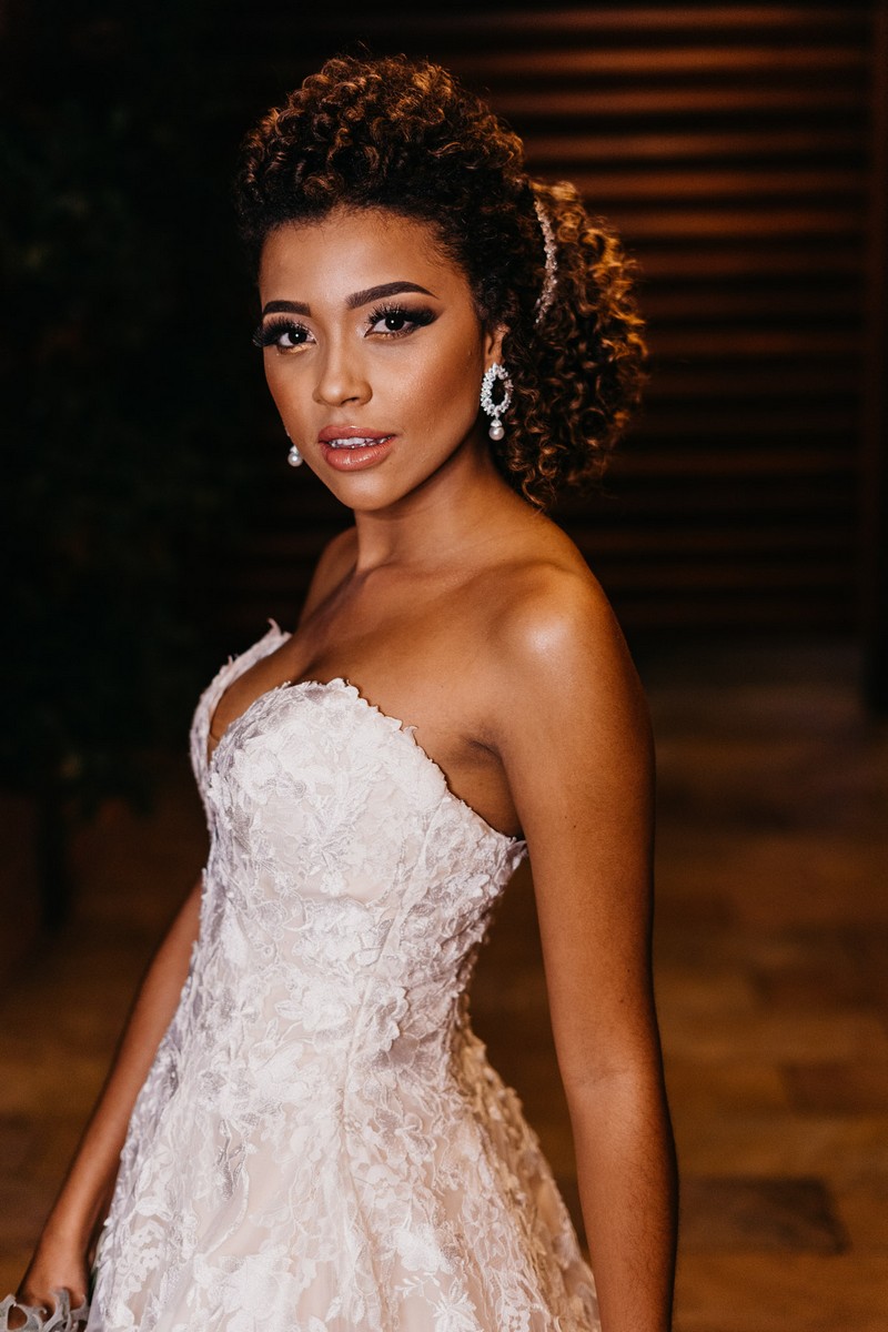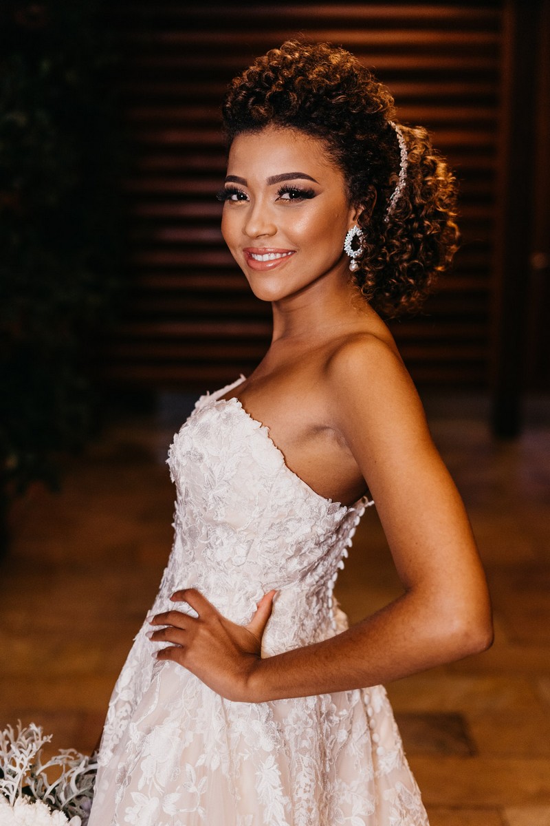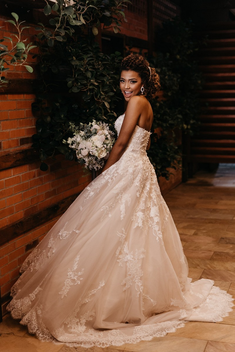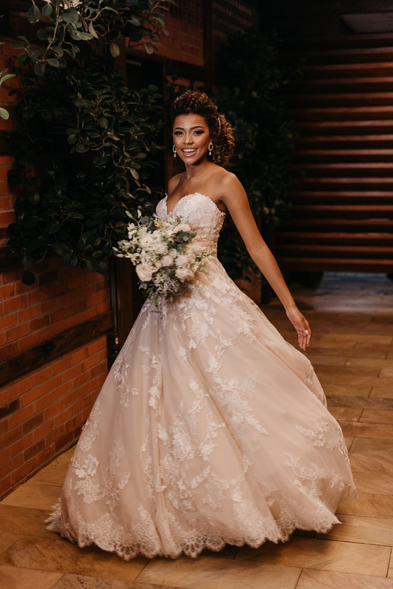 Ela se casou com vestido de noiva La Modelista, um modelo tomara que caia ao estilo princesa com muitos detalhes em rendas, divino! O look ficou ainda mais perfeito com seu maravilhoso sorriso!