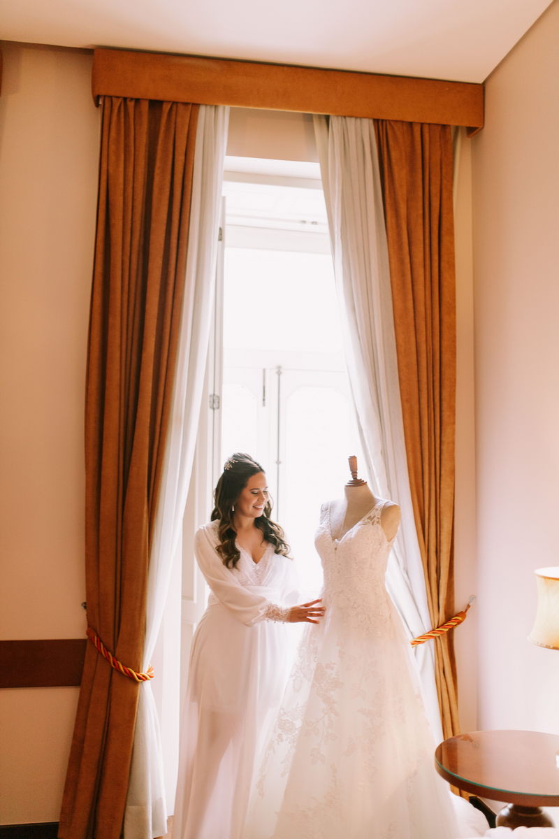 A Angélica estava belíssima de noiva, ela optou por um vestido de noiva La modelista, um modelo estilo princesa, delicado e romântico, com um trabalho de renda e transparência super diferenciado nas costas, maravilhoso! Amamos cada parte do seu look noiva.