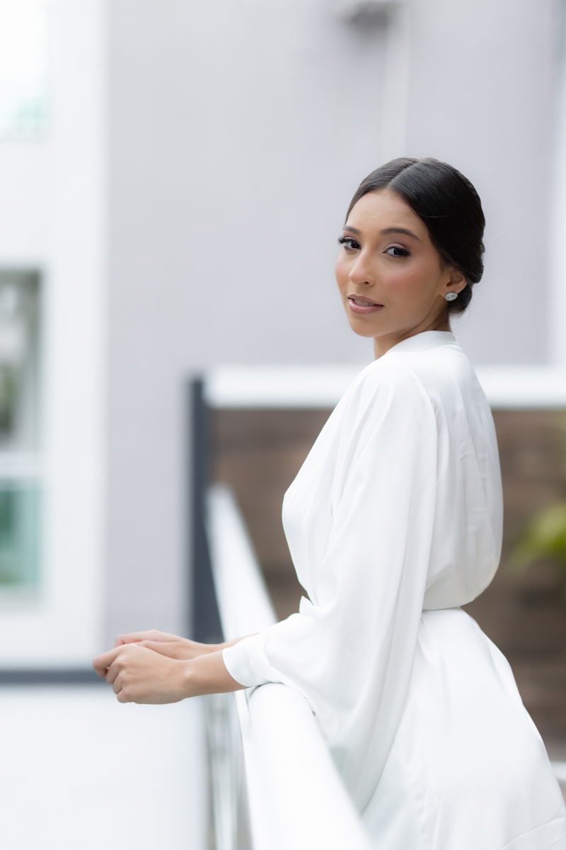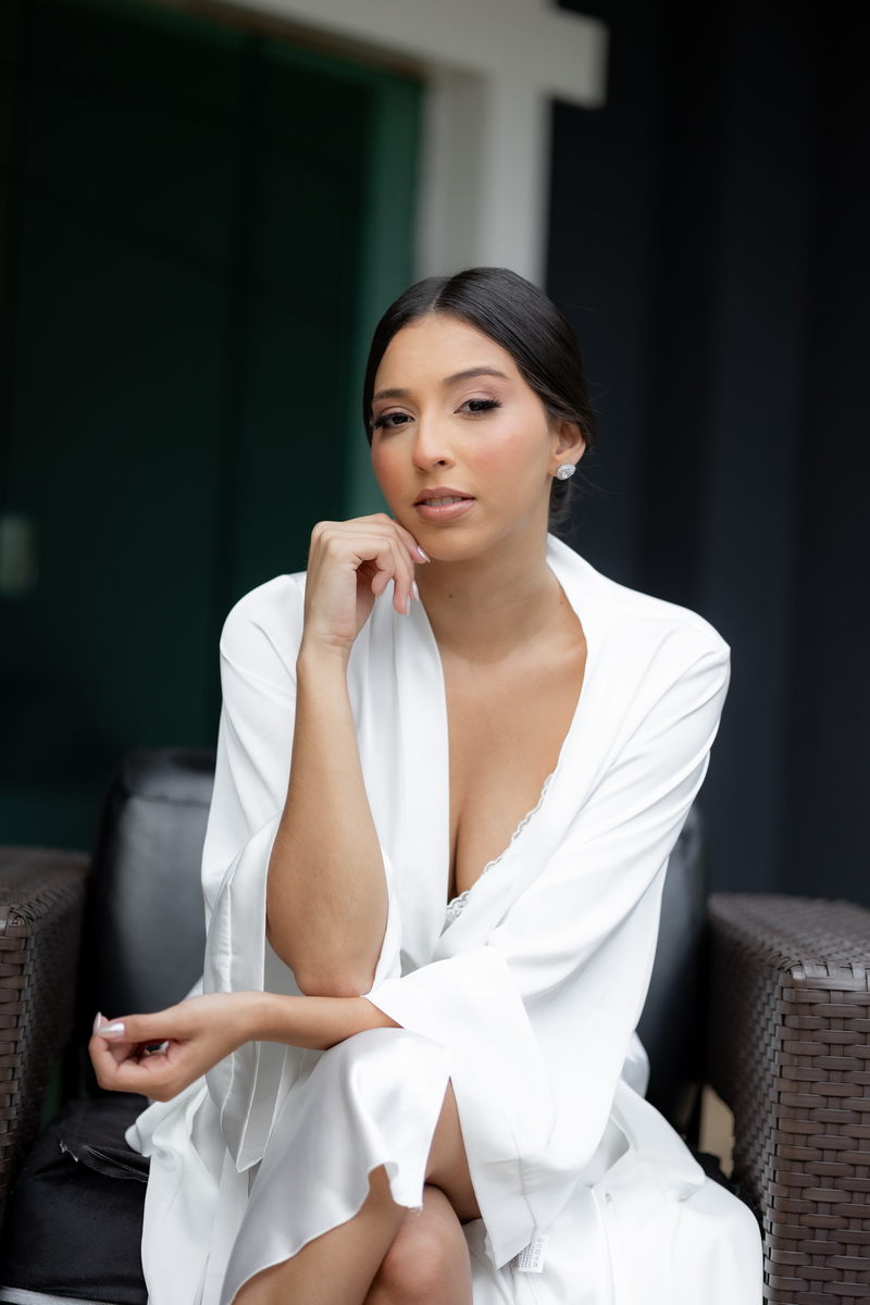A maquiagem, assinada pela @bycarol.andrade, destacou a beleza natural de Pamela com um visual leve e elegante. O penteado preso realçou o design do vestido e trouxe ainda mais harmonia ao look.
