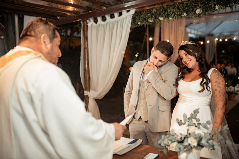 Sob a coordenação da @jessica.eventos, a cerimônia fluiu com perfeição. Cada detalhe foi executado com precisão, garantindo que o dia fosse tão tranquilo quanto memorável para todos os presentes. As emoções e momentos especiais foram capturados de maneira sublime pela @1clickfotoefilme. As imagens refletem não apenas a beleza, mas também a profundidade do amor entre o casal.