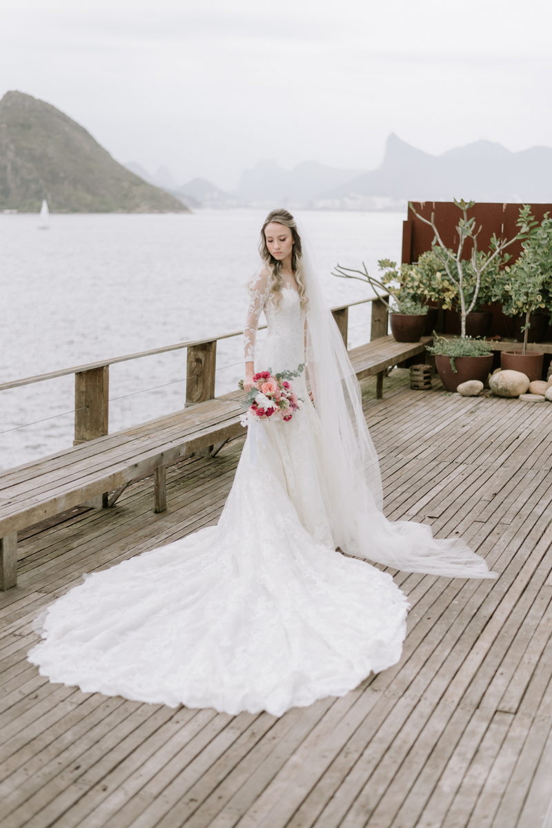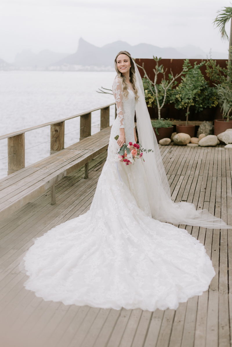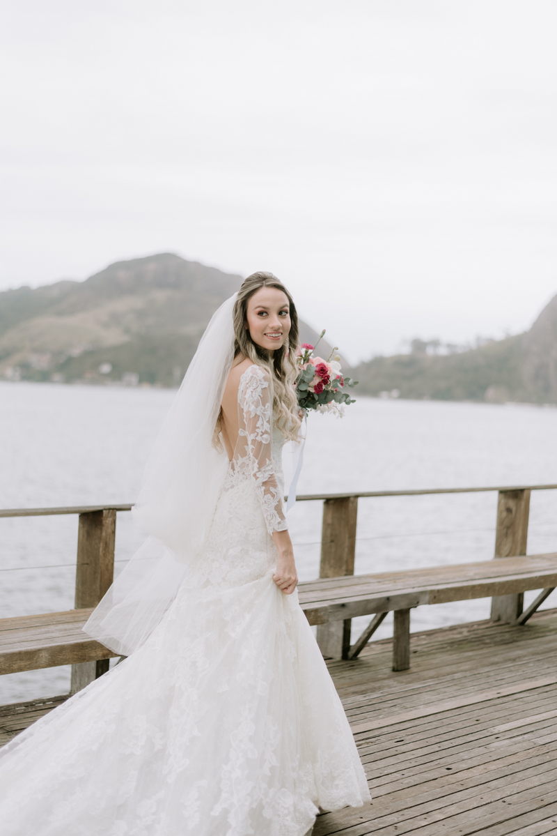 Essa mulher incrível, com carisma contagiante se casou em um charmoso vestido de noiva da La Modelista. Um modelo super romântico, com um desenho em renda diferenciado e detalhes em renda e transparência na manga. Ela estava divina, o penteado romântico trouxe ainda mais delicadeza ao look.