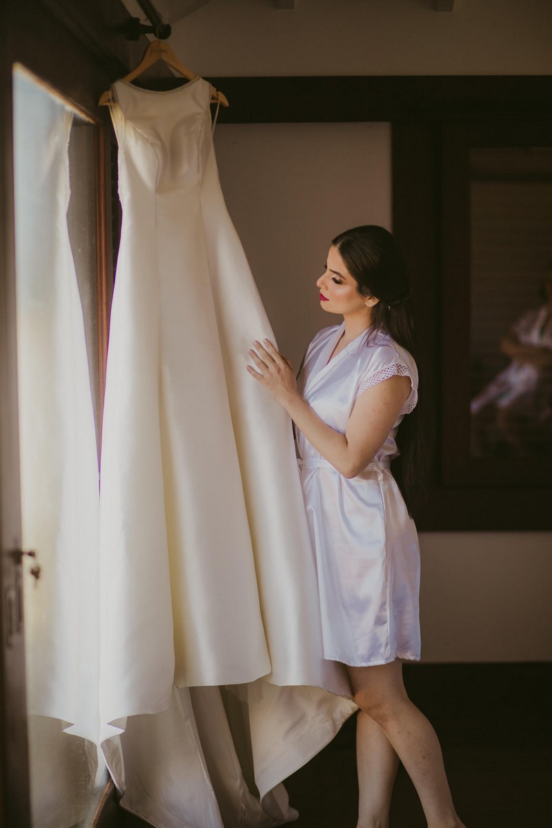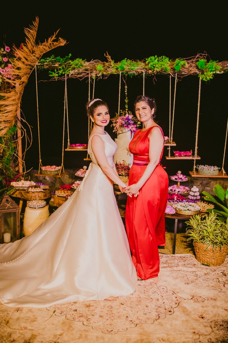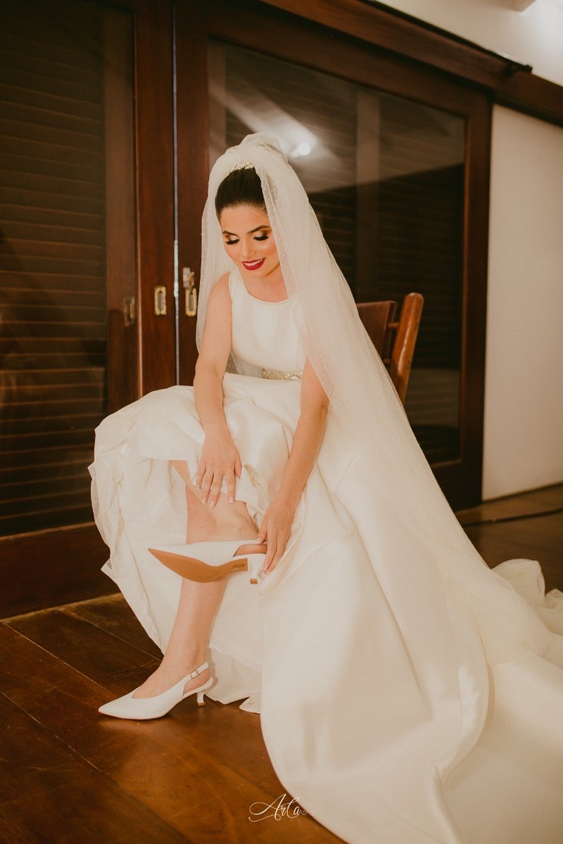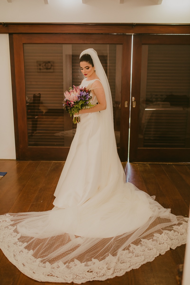 Com toda delicadeza e beleza, Rebeca encantou a todos. Ela escolheu um vestido de noiva La Modelista divino de zibeline com corte evasê que combinou perfeitamente com tudo da festa, um modelo super elegante e sofisticado que completou ainda mais a sua beleza. Um vestido feito para mulheres que sonham em brilhar!