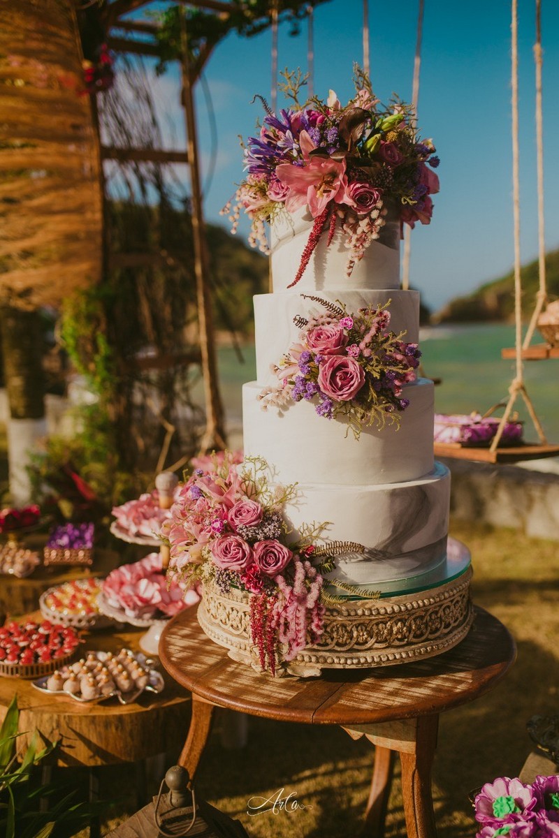 Foi tudo perfeito. O cenário do bolo com o mar ao fundo marcou nossas vidas para sempre. Sou uma noiva plenamente satisfeita e feliz por cada escolha que fiz, não mudaria nada se pudesse voltar no tempo.