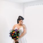 A Gabi estava belíssima de noiva, sua maquiagem, penteado e buquê em perfeita sintonia com o vestido de noiva La Modelista, tudo realçando ainda mais sua beleza. Um modelo diferenciado com lindos detalhes em renda, digno de uma princesa.