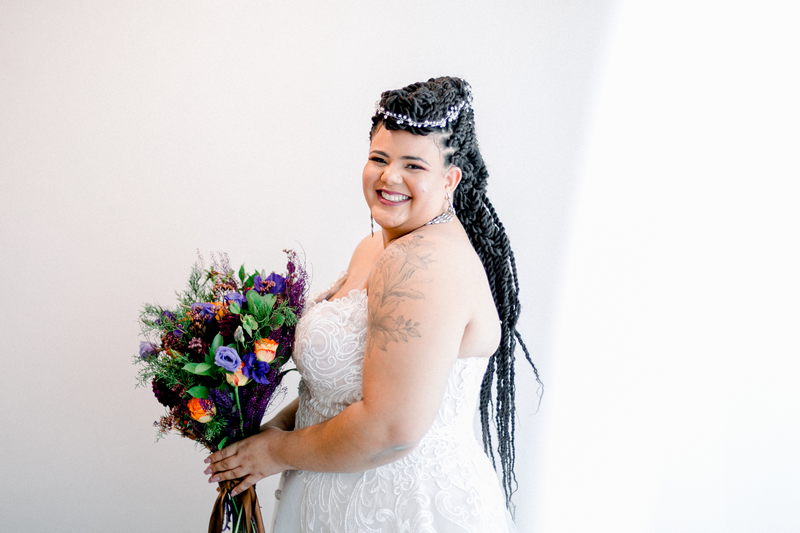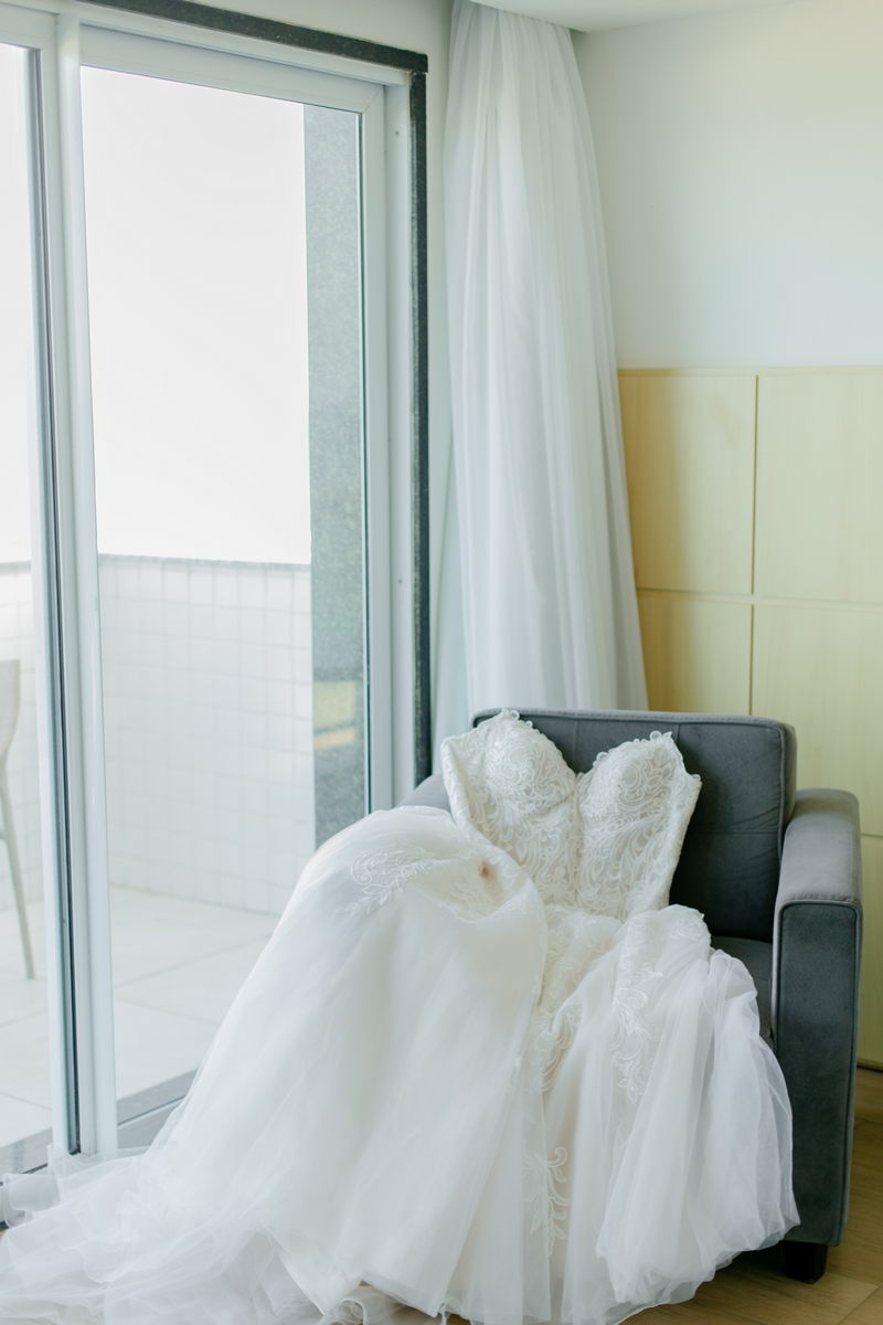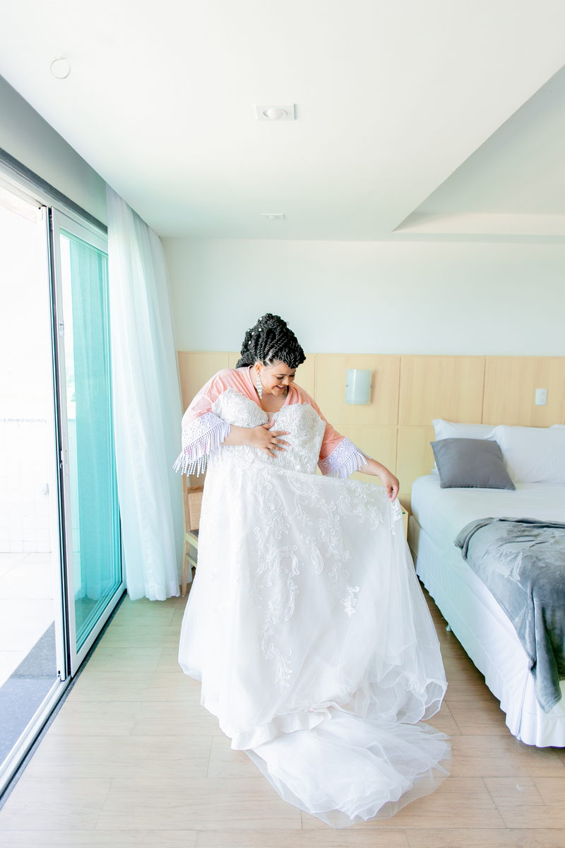 A Gabi estava belíssima de noiva, sua maquiagem, penteado e buquê em perfeita sintonia com o vestido de noiva La Modelista, tudo realçando ainda mais sua beleza. Um modelo diferenciado com lindos detalhes em renda, digno de uma princesa.
