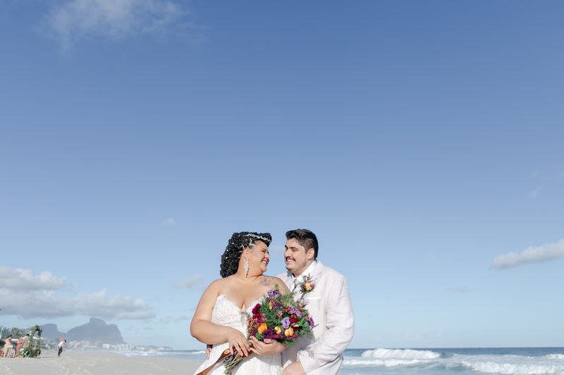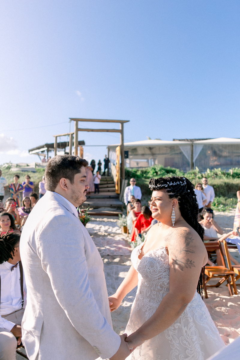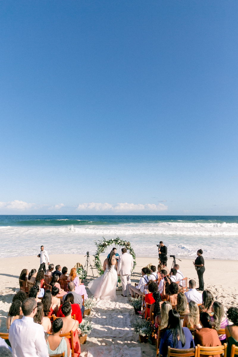 Hoje iremos mostrar uma cerimônia mágica. O Casal optou por uma cerimônia ao ar livre na Praia, impossível não se encantar. Um local totalmente integrado com a natureza, com uma vista incrível, perfeito para cerimônias intimistas e mágicas como esta.