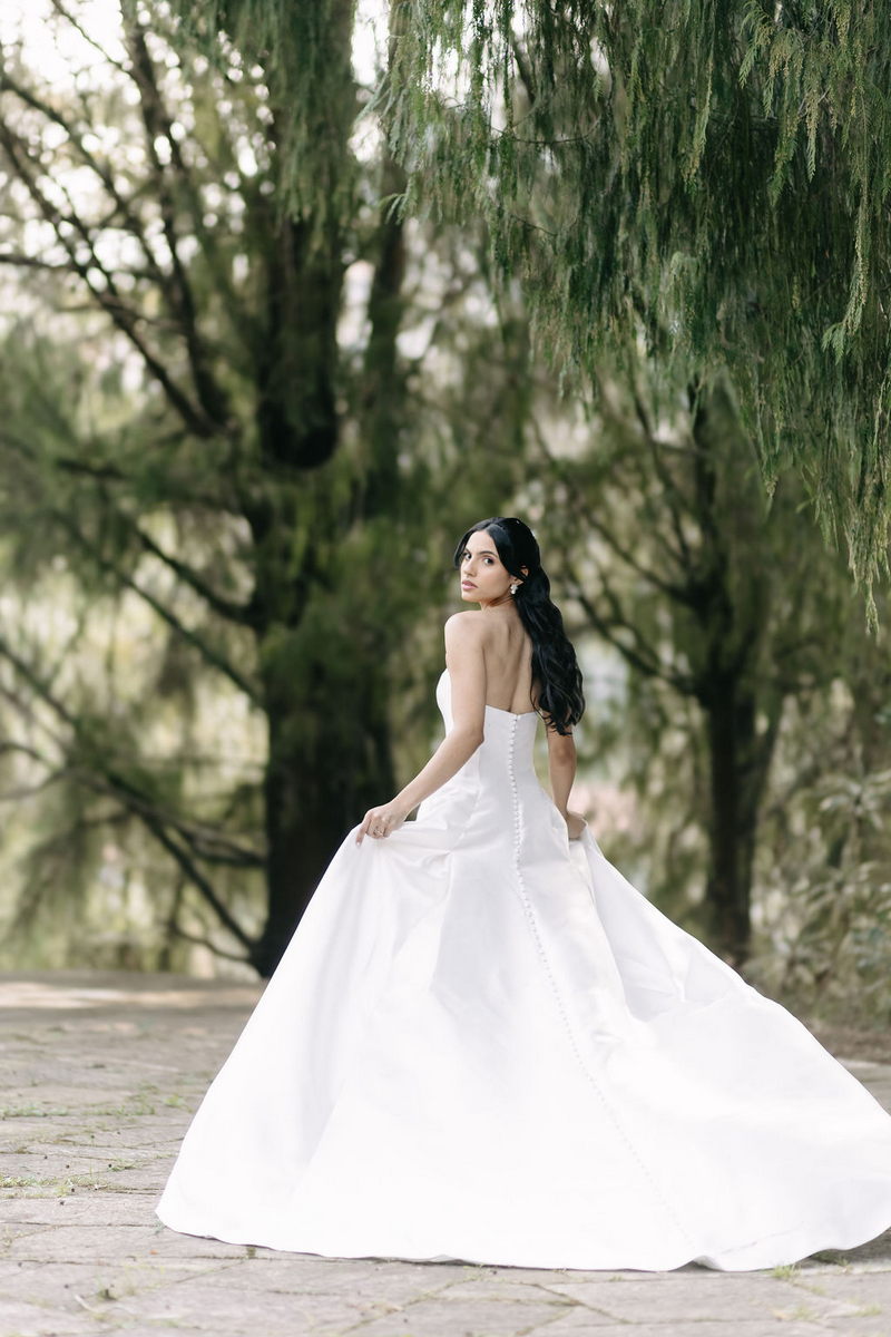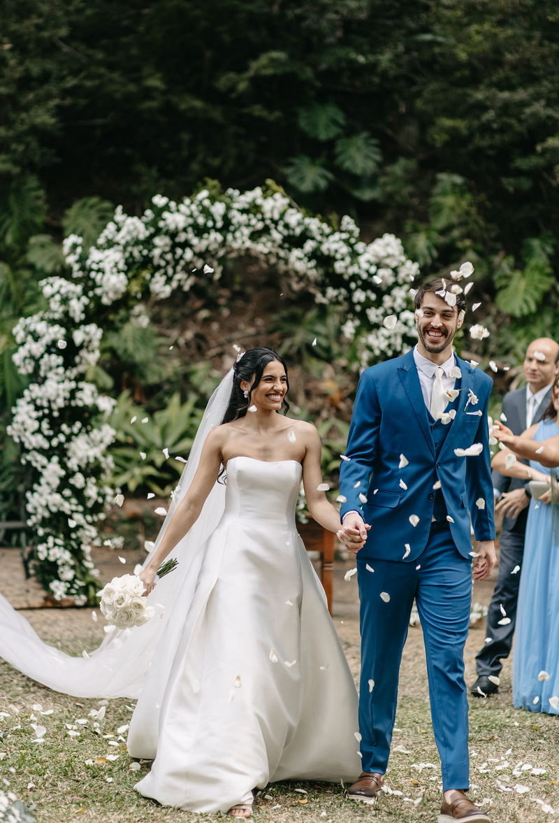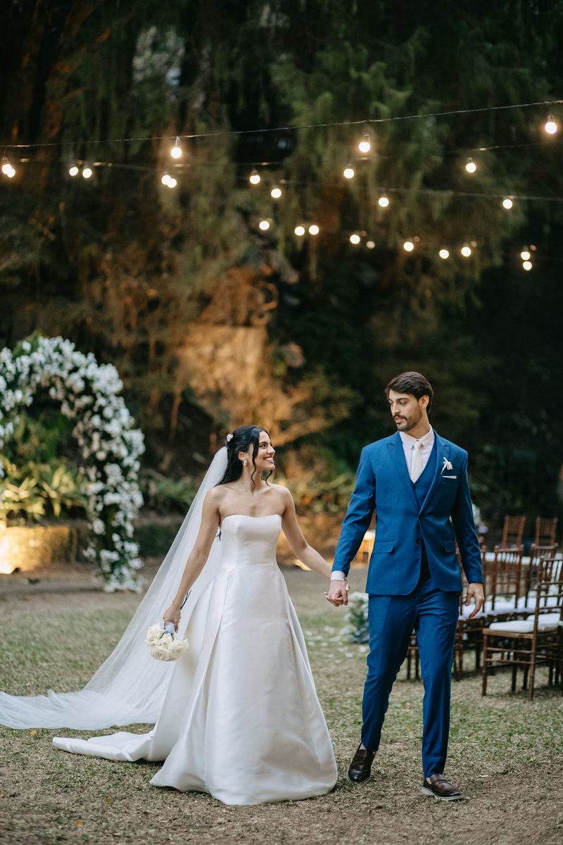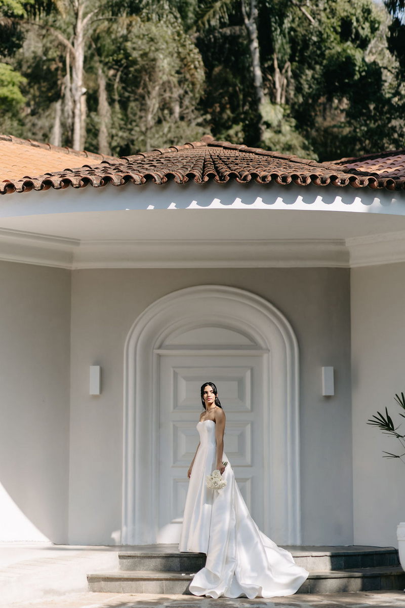 No centro de tudo, estava a belíssima noiva Camila,  que encantou a todos com sua felicidade. O seu vestido de noiva La Modelista minimalista, valorizava a elegância e a modernidade. O modelo tomara que caia, com caimento impecável e cauda espetacular, encantava com a sua sofisticação. A maquiagem ficou por conta da @laysacruz_makeup, com sensibilidade e técnica, ela realçou a beleza da noiva, mantendo a harmonia com o vestido e com a luz do cenário. Um look encantador!