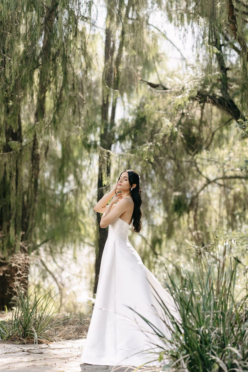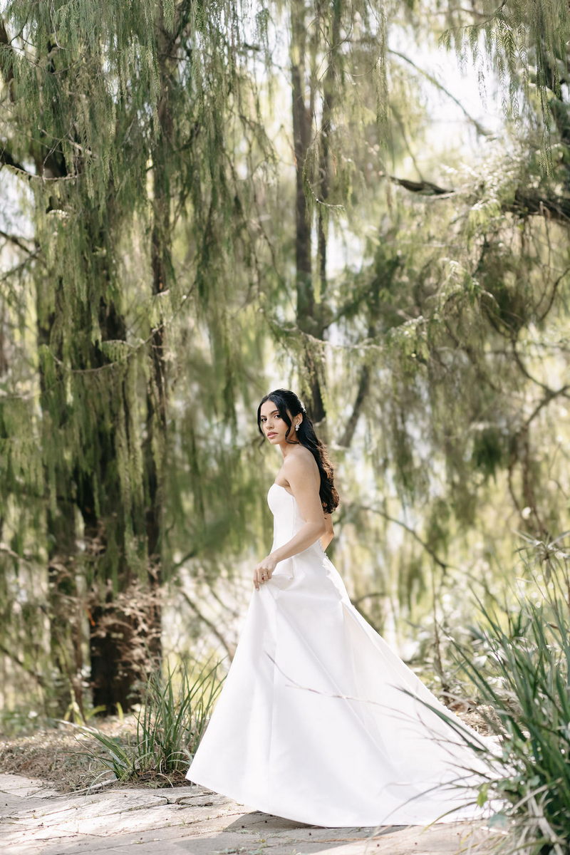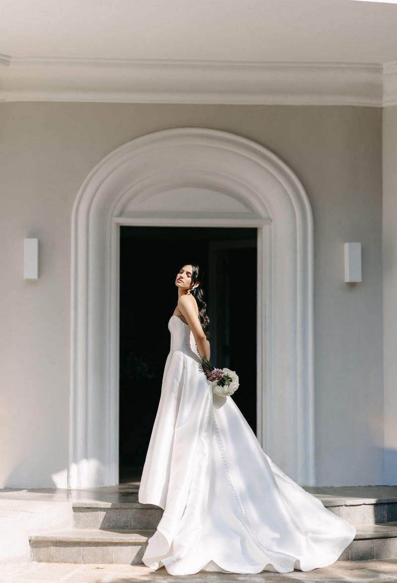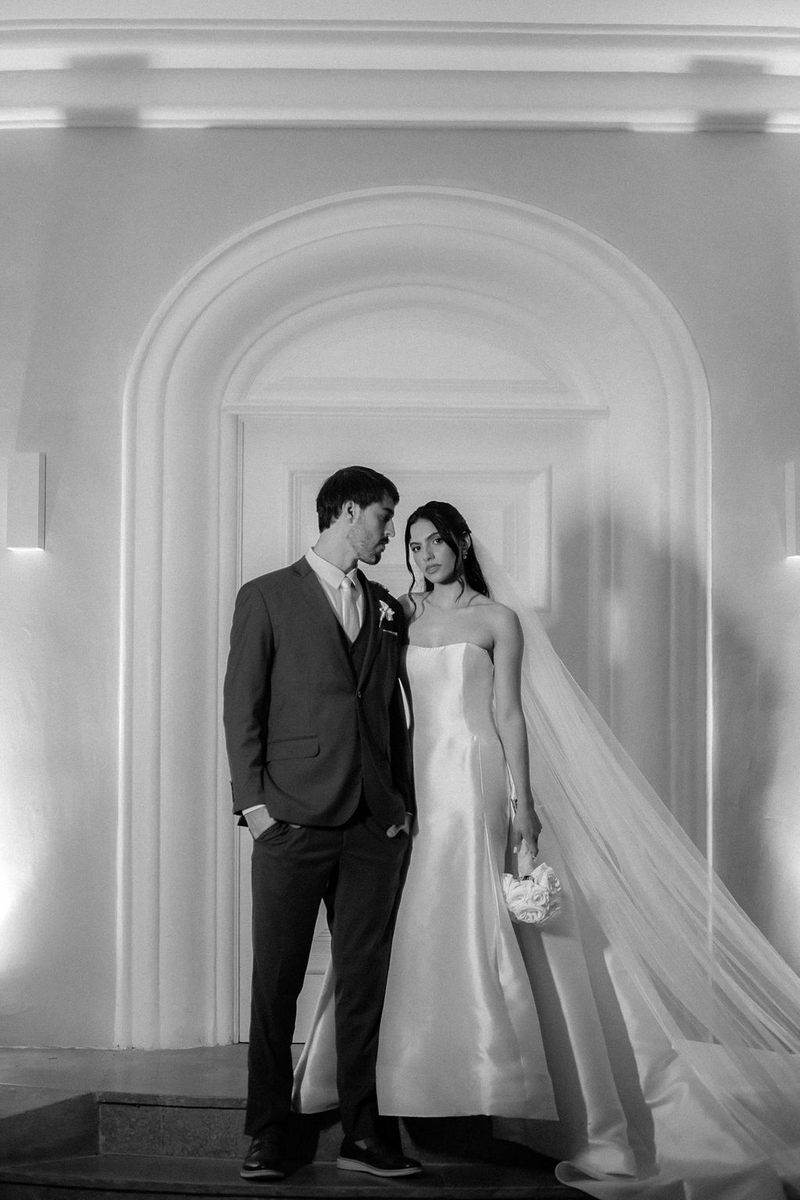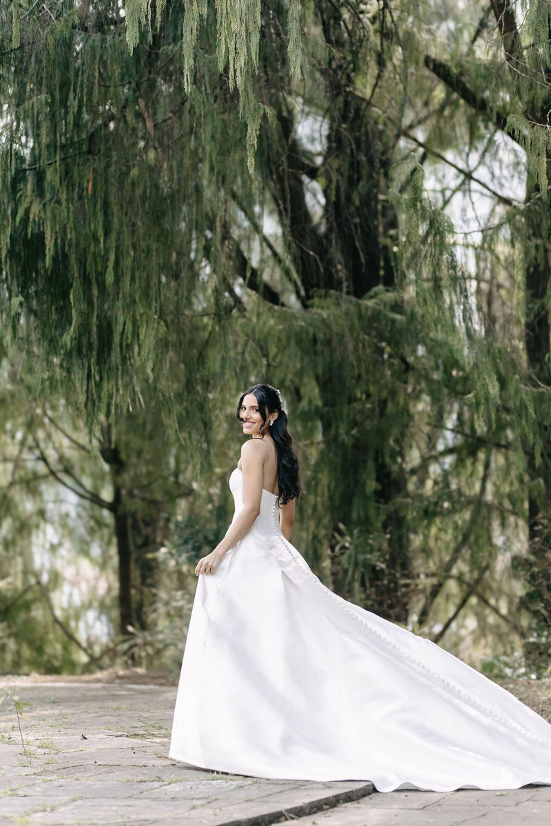No centro de tudo, estava a belíssima noiva Camila,  que encantou a todos com sua felicidade. O seu vestido de noiva La Modelista minimalista, valorizava a elegância e a modernidade. O modelo tomara que caia, com caimento impecável e cauda espetacular, encantava com a sua sofisticação. A maquiagem ficou por conta da @laysacruz_makeup, com sensibilidade e técnica, ela realçou a beleza da noiva, mantendo a harmonia com o vestido e com a luz do cenário. Um look encantador!