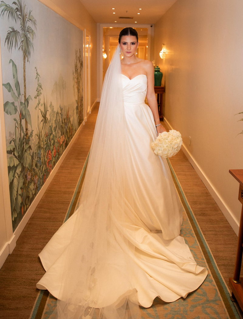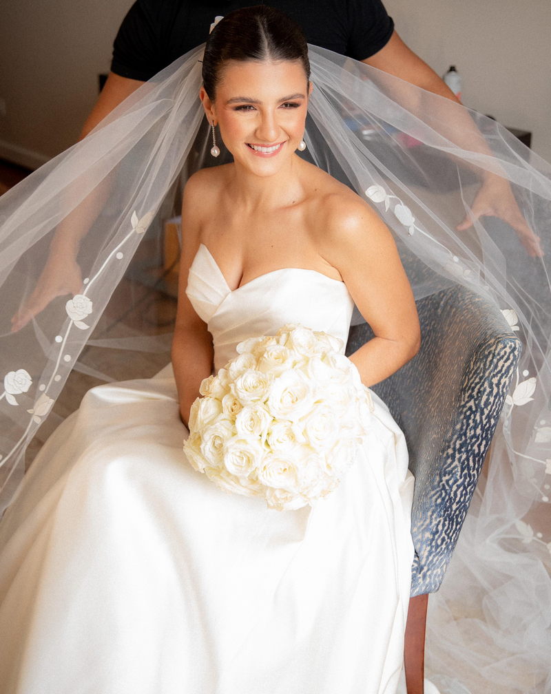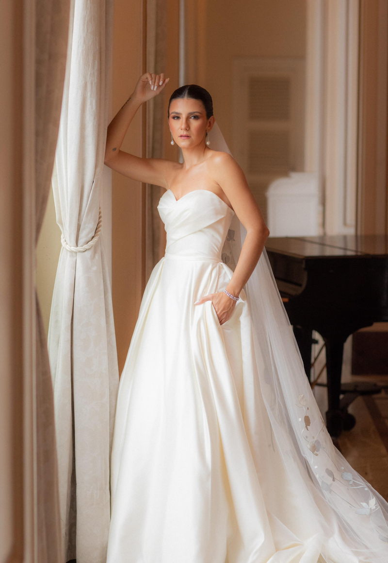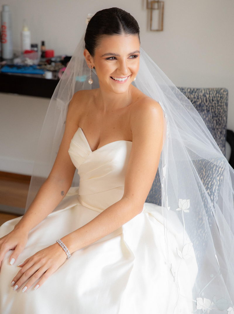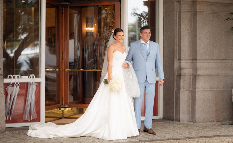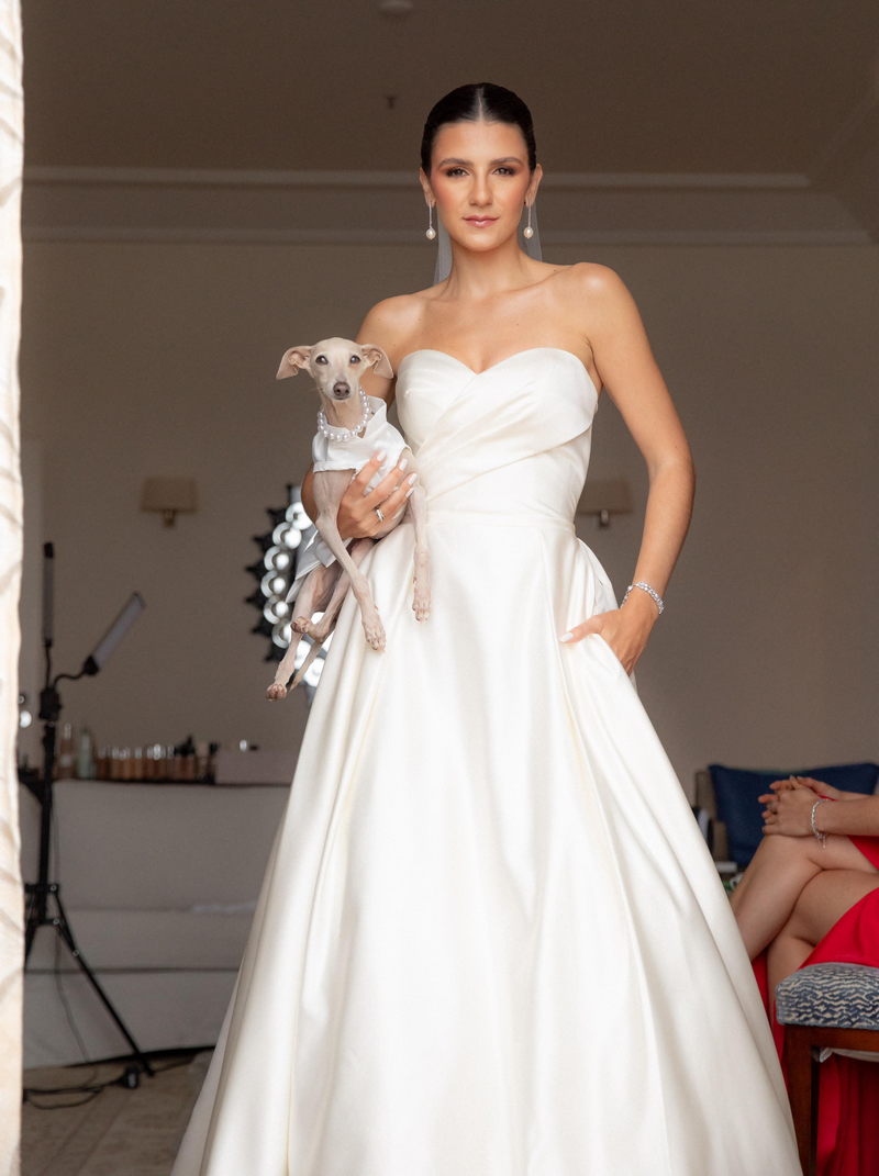 A Mariana estava absolutamente radiante em seu vestido de noiva La Modelista. O design tomara que caia clássico e sofisticado, apresentava detalhes perfeitos no busto e cauda divina. Uma verdadeira obra-prima da alta costura que realçou a beleza da noiva de forma encantadora. A maquiagem e o penteado, criados com maestria pelo @gjunioralves, destacaram a beleza natural da Mariana, conferindo-lhe um ar de princesa moderna. Cada detalhe foi pensado para que ela estivesse deslumbrante do início ao fim da celebração.