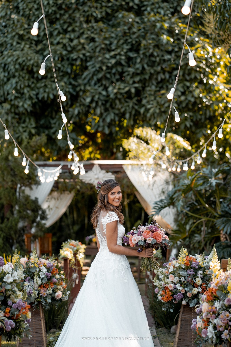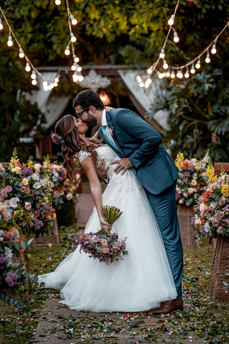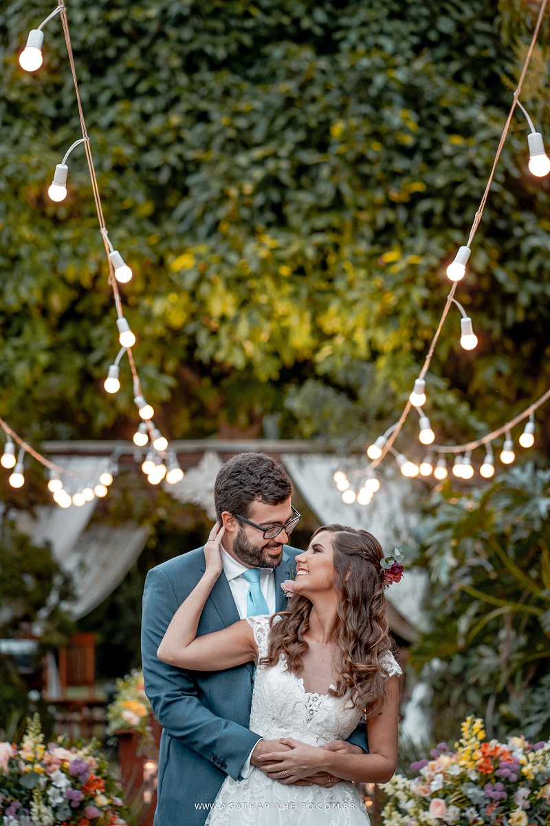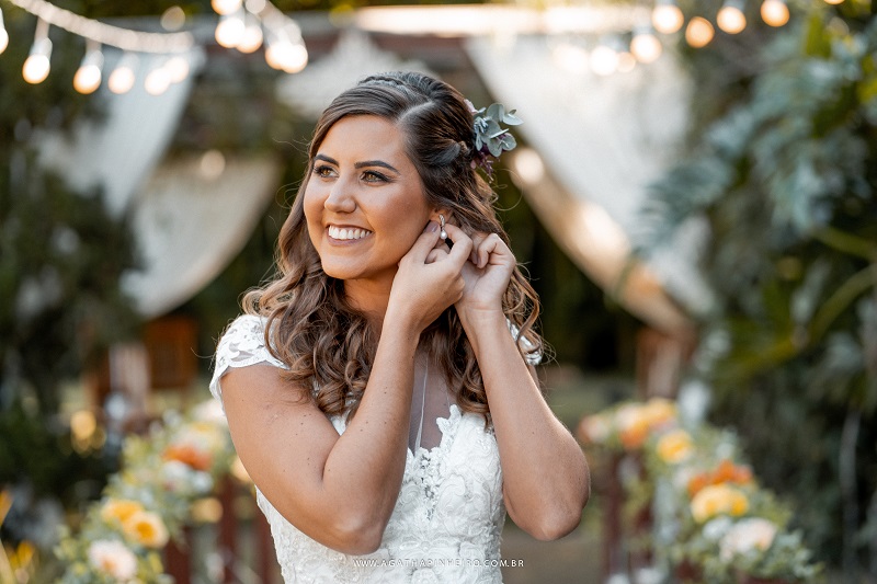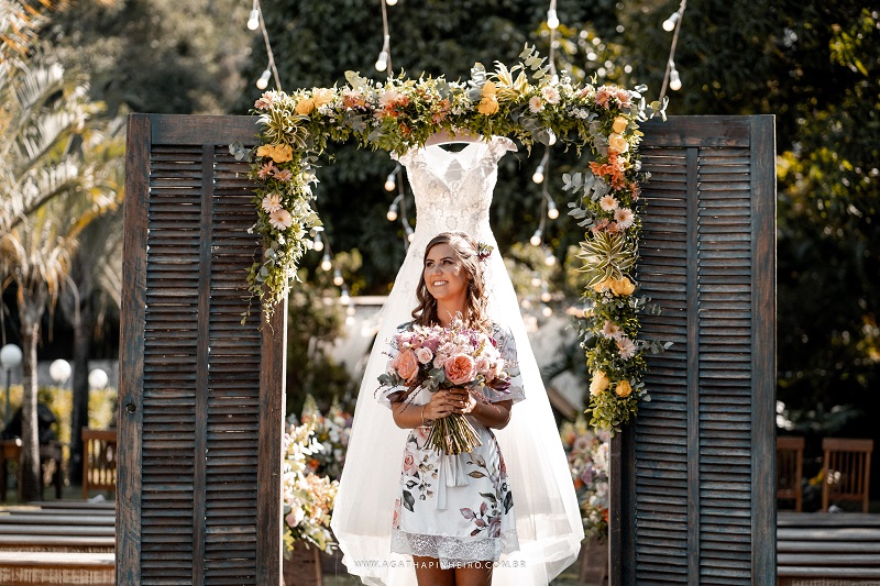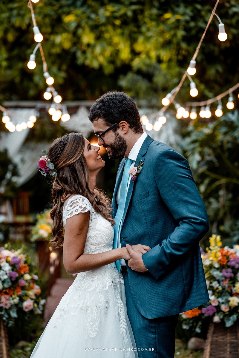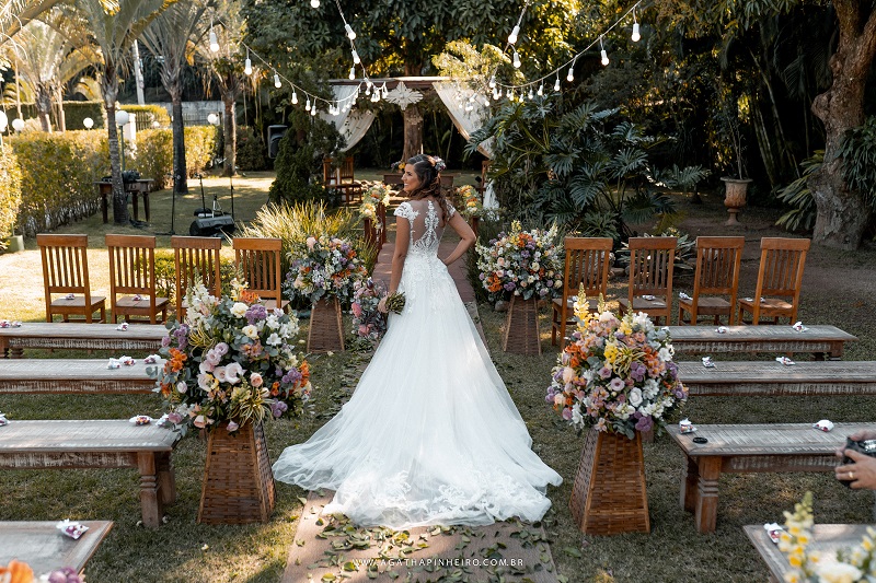 O casamento que vamos descrever hoje é uma inspiração à parte. A Fernanda e o Rodrigo se casaram ao ar livre, num ambiente coberto pela natureza com muito encanto e magia. O casal apostou muito nos arranjos de flores, com uma paleta mais quente trazendo vivacidade ao ambiente, não tinha como ficar mais lindo!