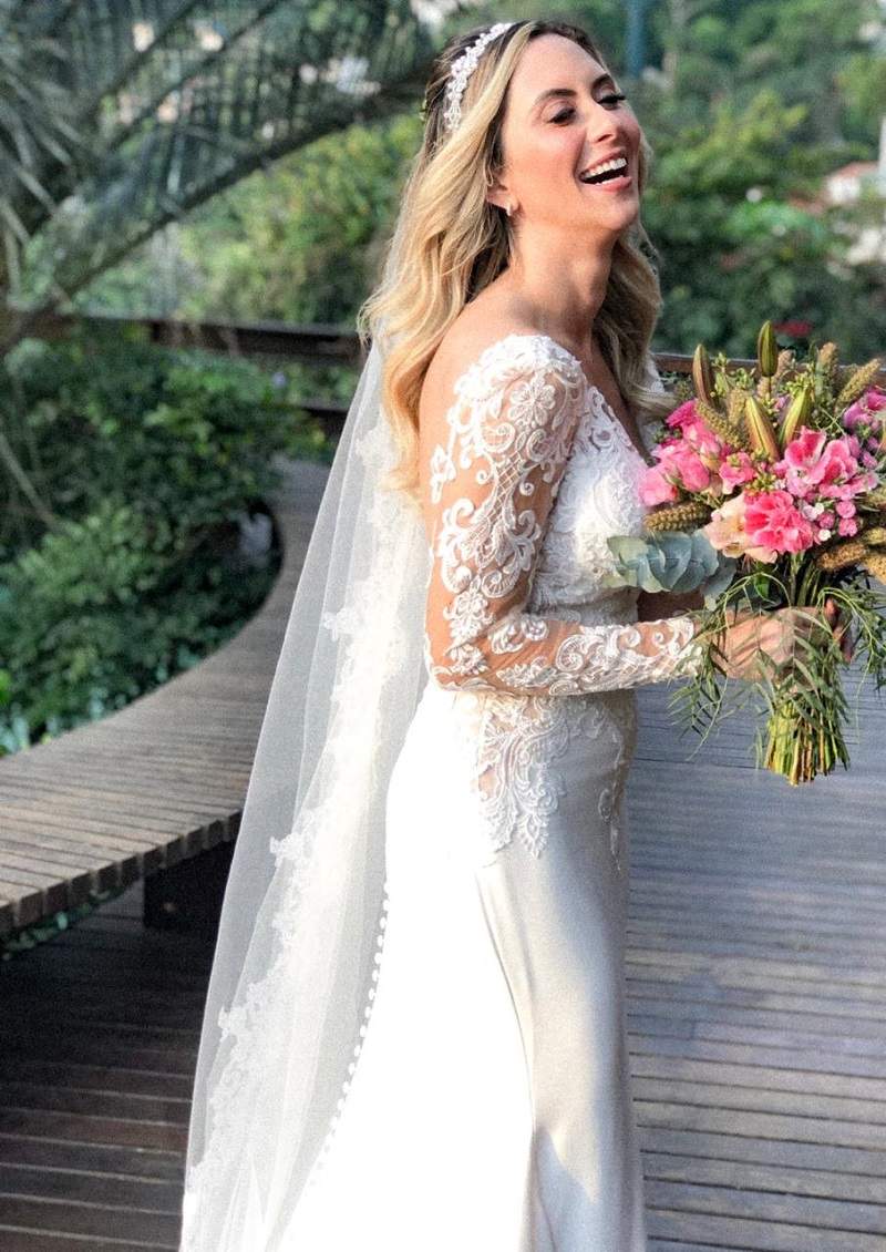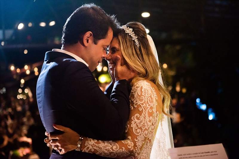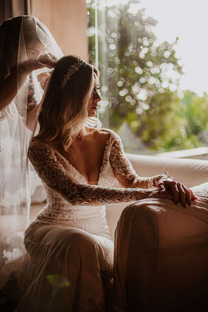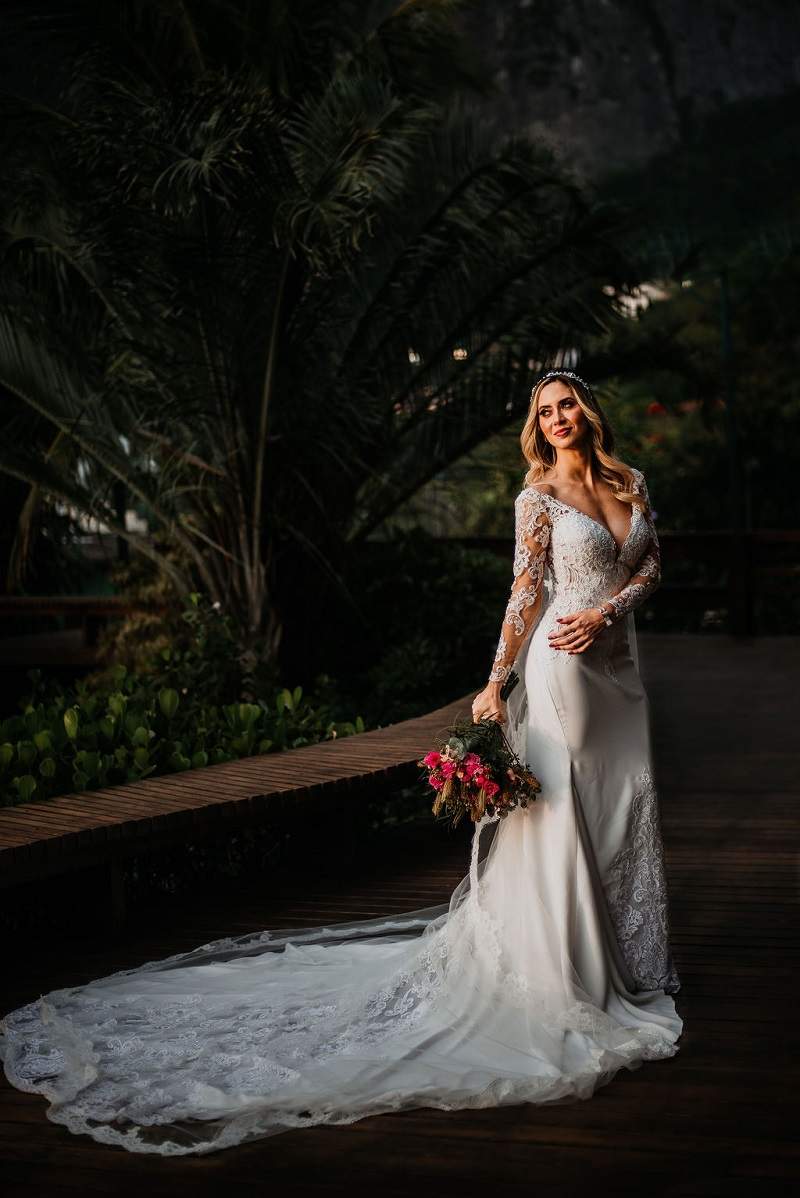 E o que dizer da Carol com esse vestido de noiva deslumbrante? Um modelo estilo sereia com um decote em V que parecia ter sido desenhado no corpo da noiva. É um vestido para quem ama brilhar no grande dia, a delicadeza do tule bordado com fio, a sensualidade da transparência. Um vestido perfeito para essa noiva tão perfeita!