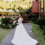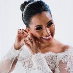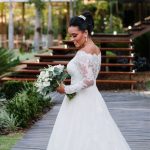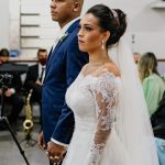 A Marcelle estava super elegante e linda com o seu vestido de noiva da La Modelista, ela optou por um modelo incrível, que realçou ainda mais a sua beleza. Um vestido manga longa, com decote ombro a ombro todo trabalhado em renda, estilo totalmente princesa!