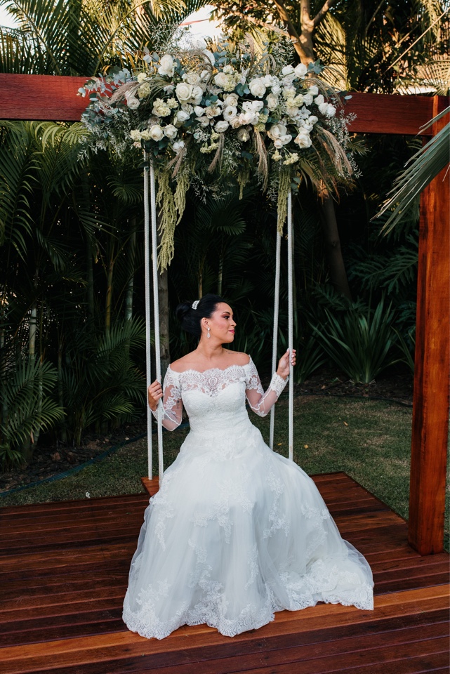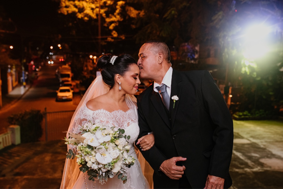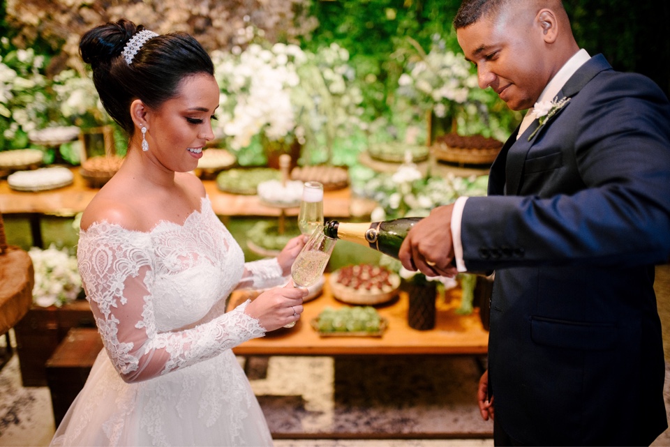 Um casamento diurno tem uma beleza sem igual, uma opção ideal para aproveitar o encanto da luz do dia em um momento tão especial. Além disso, é possível usar elementos para trazer ainda mais alegria para o dia da cerimônia. Uma das opções é usar e abusar de flores na decoração, o casal optou por flores brancas que trouxeram leveza e aconchego.