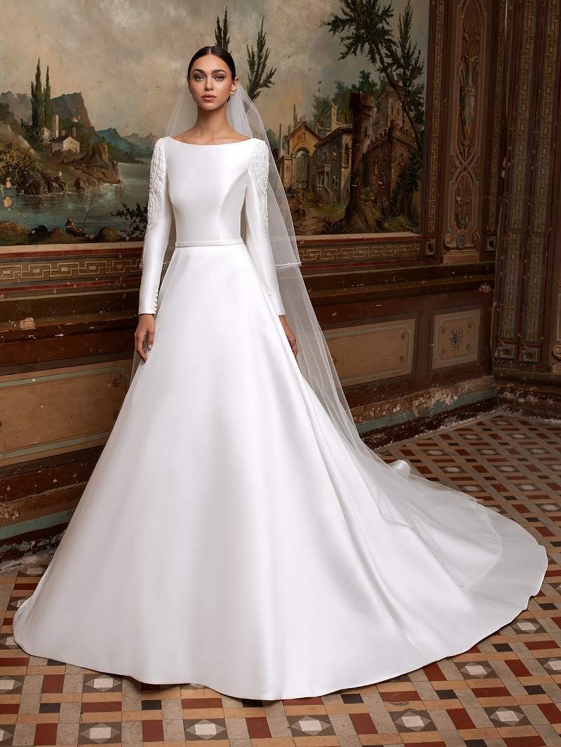 Seu vestido de noiva dos sonhos sem dúvida seria uma interpretação moderna de um clássico vestido ao estilo princesa