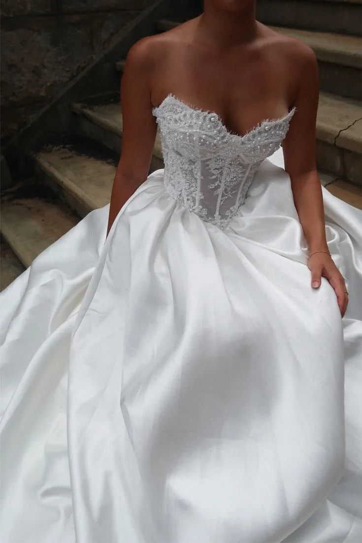 O corte princesa, que amplia a saia entre o quadril e o busto, é um dos favoritos das noivas que não querem abrir mão do volume.