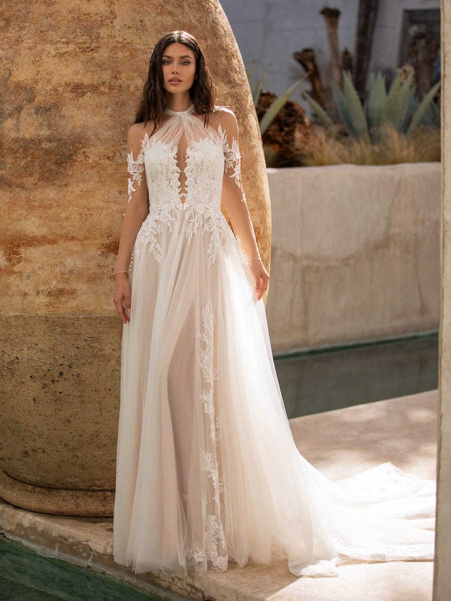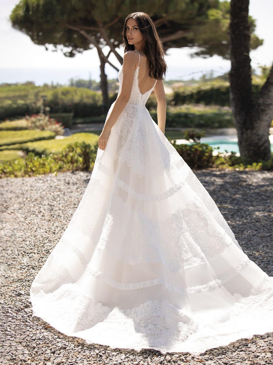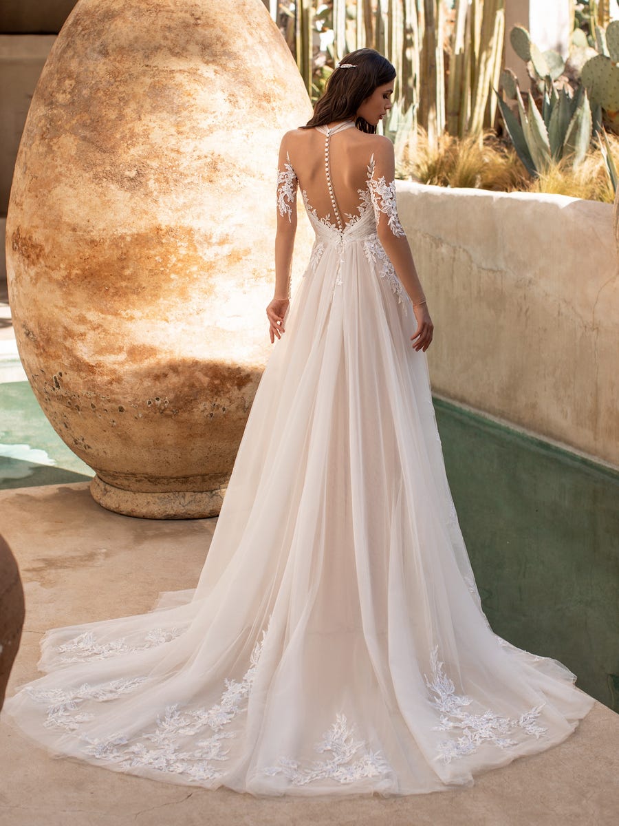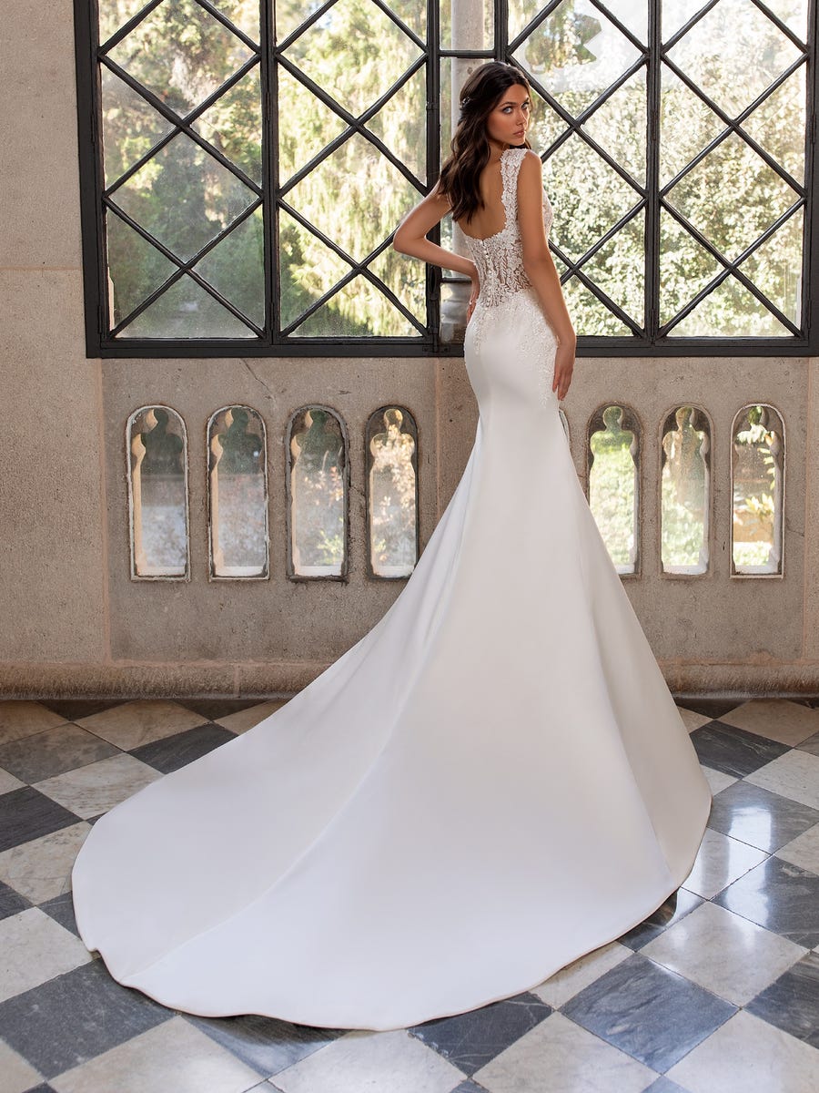 A coleção conta com muitos detalhe em tule, rendas diferenciadas, transparência e pedrarias, além de lindos modelos minimalista em Mikado. O ponto alto são os detalhes únicos nas costas, com trabalhos impecáveis que fazem toda a diferença no look, trazendo elegância e sensualidade. Modelos para todos os gostos e estilos, desde as noivas mais simples, às mais românticas, modernas e até tradicionais.