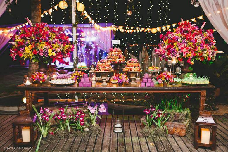 Esse tipo de decoração combina com casamentos noturnos e pode trazer vivacidade ao ambiente da festa.