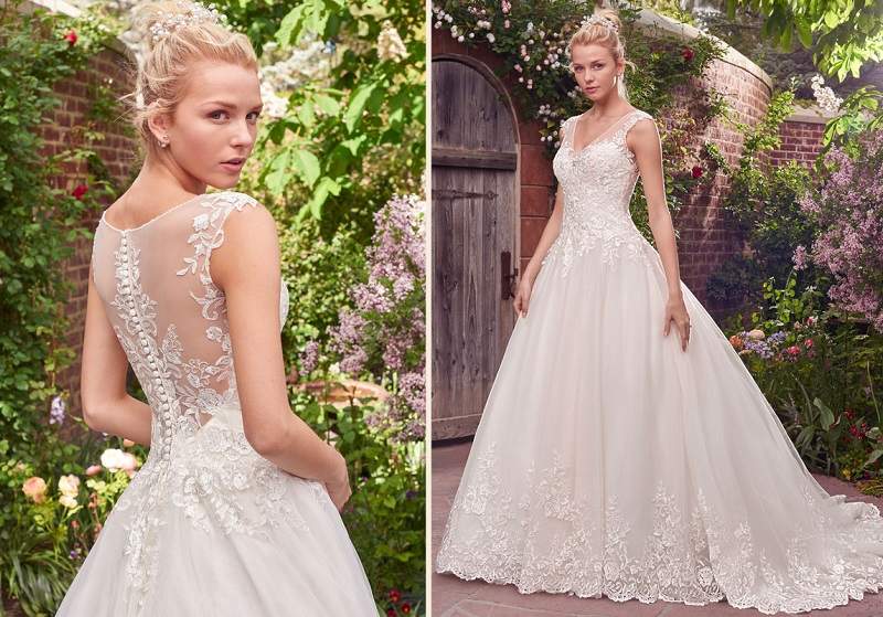 Vestidos mais clássicos, com saia volumosa em ‘A’, são igualmente apropriados para a ocasião. Eles são imponentes e delicados ao mesmo tempo.
