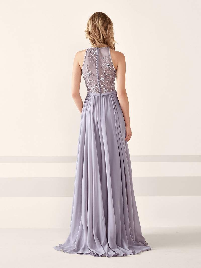 Lavanda é uma tonalidade que está em alta, então, se prepare para ver a obra de arte que é a nossa próxima sugestão! A saia é super fluida e os bordados de flores deixam a composição ainda mais romântica. Aposte em um penteado preso e uma maquiagem um pouco mais dramática para complementar.
