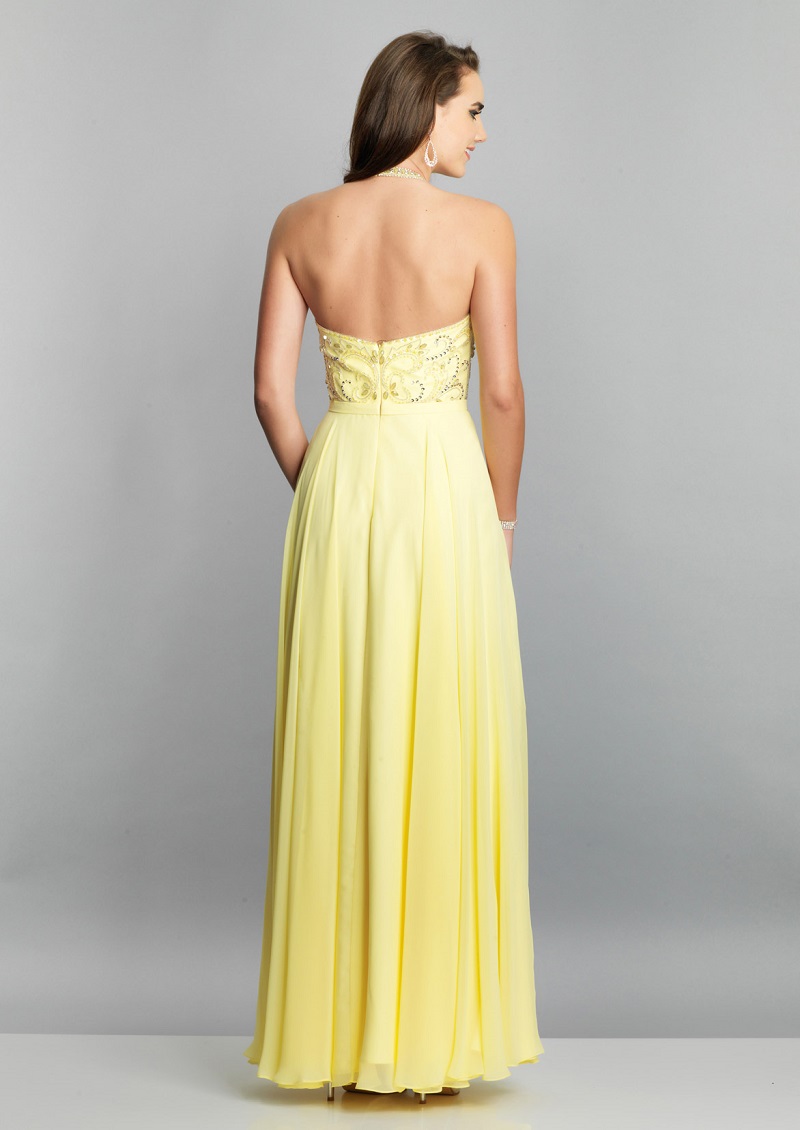 Essa outra peça também tem a saia fluida e em camadas, que proporciona esse efeito de movimento, como se você estivesse flutuando. O tom de amarelo fica incrível especialmente em quem tem pele morena e negra, porque cria um contraste bem interessante. E o bordado na parte superior da peça é um charme a mais.