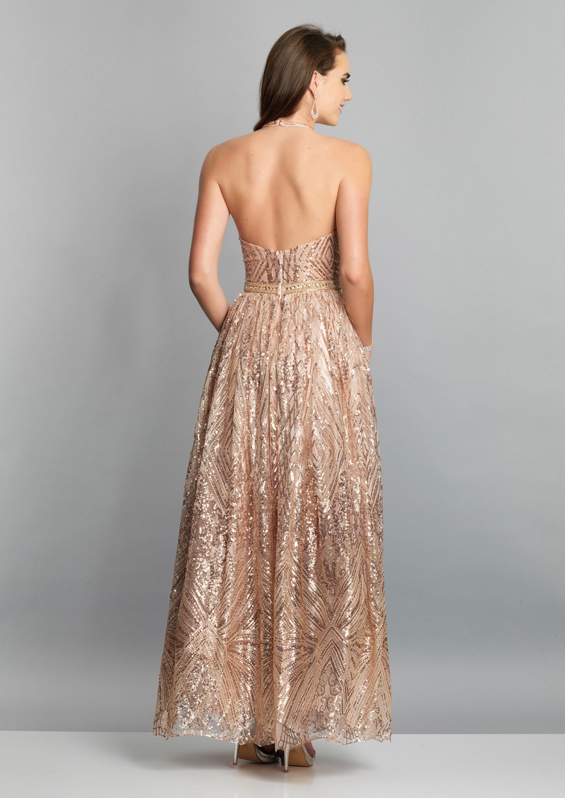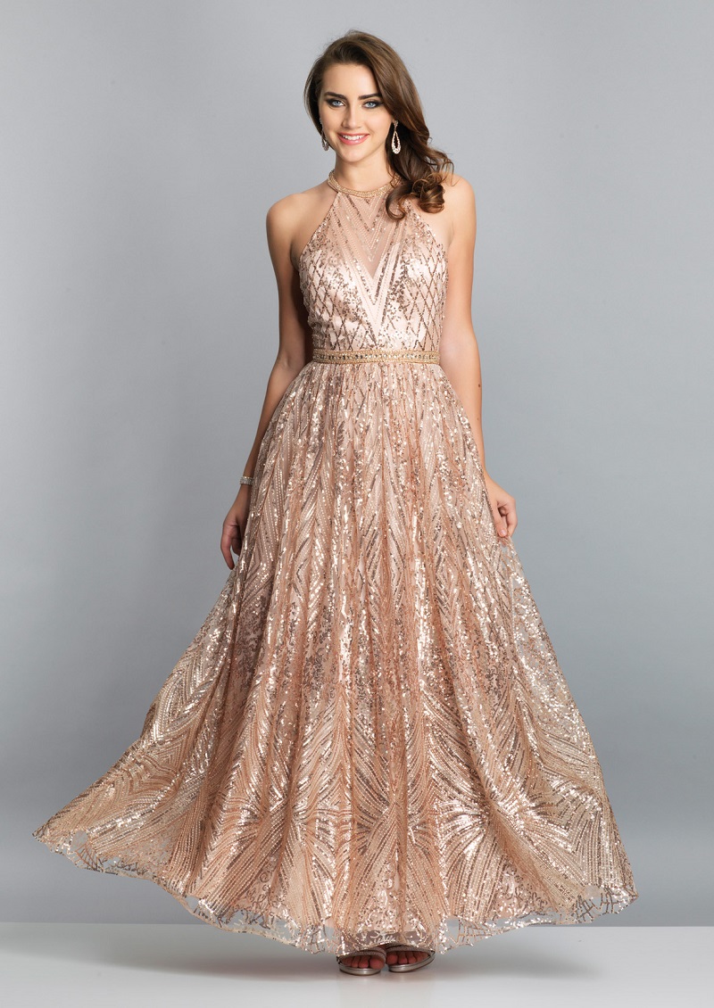 Se você quer investir em vestidos de festa modernos no Rio de Janeiro sendo mais ousada, aposte nos tecidos metalizados, como esse. O vestido é todo metalizado em tom de dourado, que faz dele marcante por si só. Você nem precisa se preocupar muito com os acessórios, porque apenas o vestido já faz o look. É o tipo de peça indispensável para ter para aqueles dias que você quer criar um visual marcante.