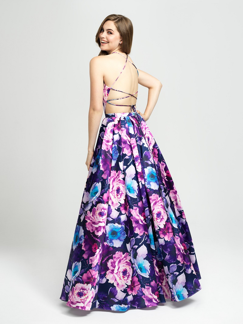 Para quem quer ousar, um casamento a tarde é uma opção perfeita para um vestido estampado, especialmente se for uma estampa floral, que combina com o clima. Este modelo é um ótimo exemplo: as flores em roxo e azul dialogam perfeitamente com o fundo escuro. Sem contar com a saia mais rodada, que também é despojada.