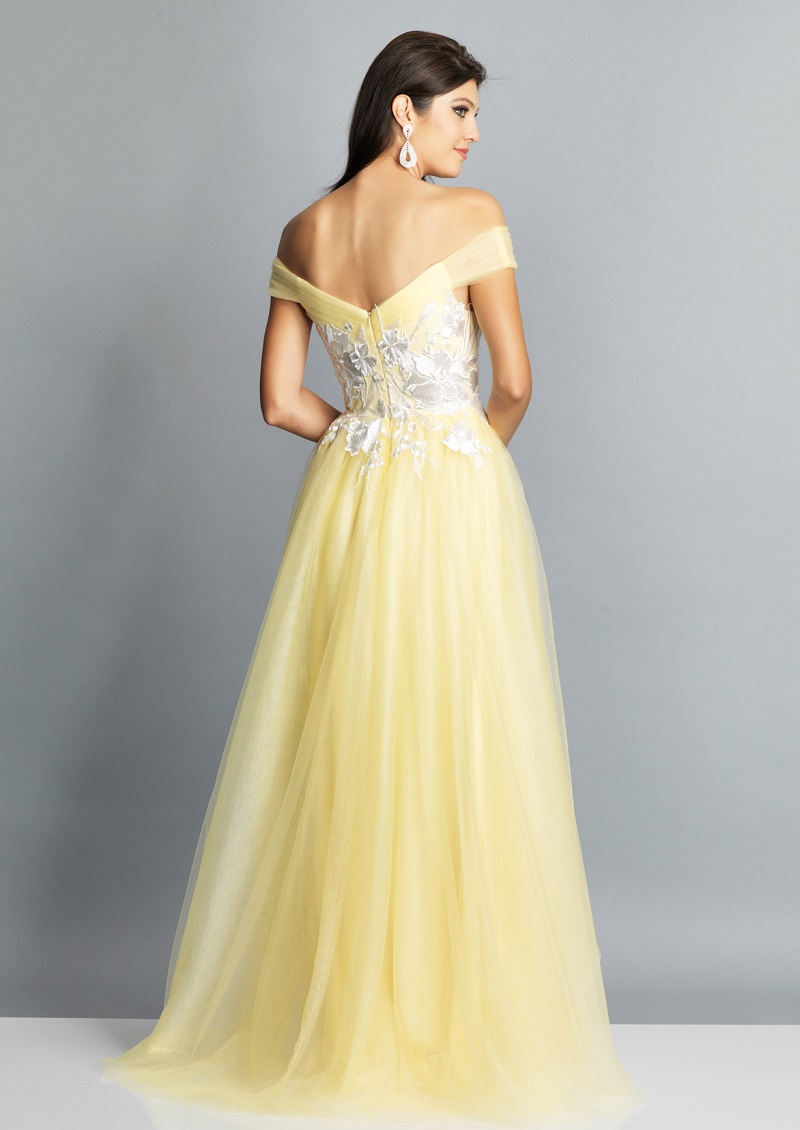 O amarelo claro também é uma excelente opção, além de ser mais alegre e vibrante na medida certa! Nesse modelo, vemos leves aplicações em branco e uma saia um pouco mais volumosa, para quem quer algo não tão discreto!