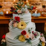 A decoração com toques de vermelho na medida certa, ficou belíssima, com um ar rústico e ao mesmo tempo com toques de sofisticação, adoramos cada pedacinho. O mural de fotos, o espaço aconchegante com guarda sol, a iluminação delicada da mesa do bolo e dos doces, tudo maravilhoso!