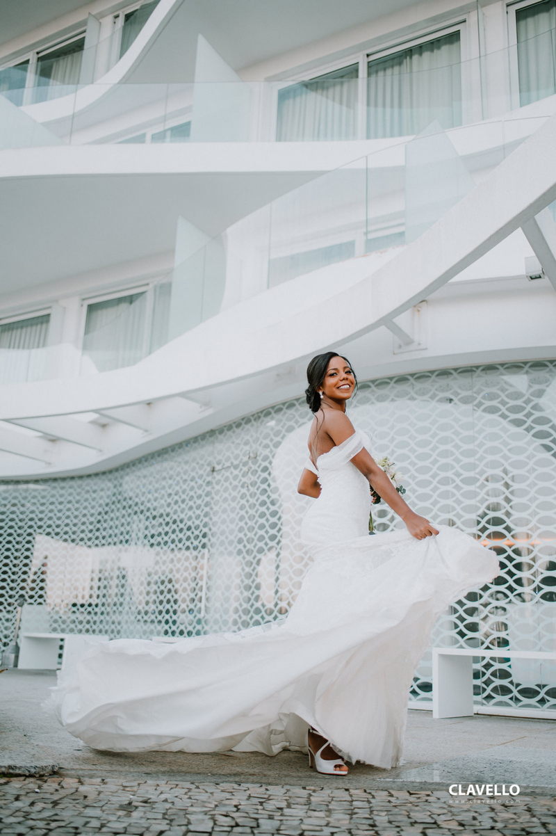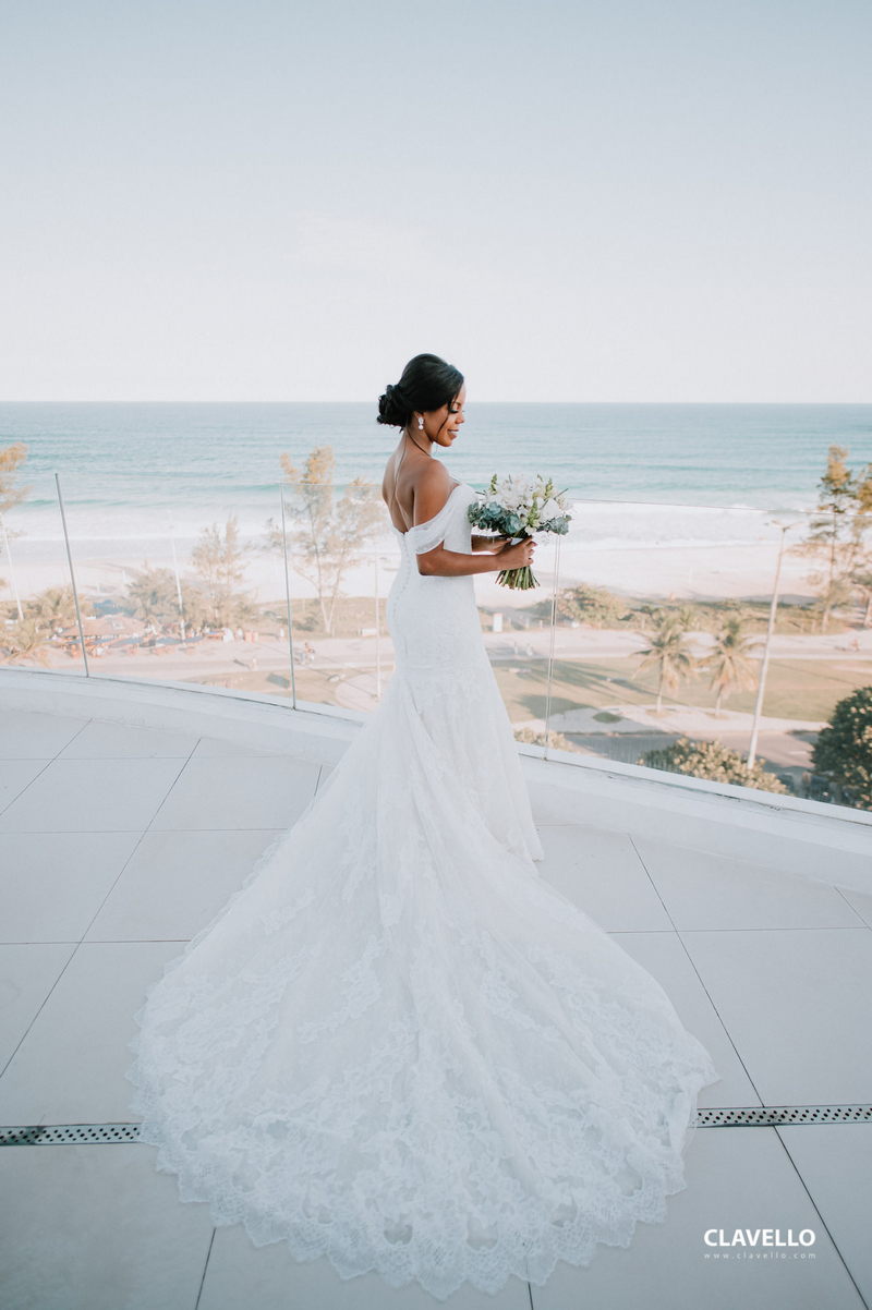 Agora iremos falar da linda Lorenna, que se casou com um vestido de noiva belíssimo da La Modelista evidenciando ainda mais a sua beleza. Um modelo maravilhoso, todo rendado, com manga super romântica e cauda cheia de detalhes em renda diferenciada. O buquê deixou o look ainda mais romântico e inesquecível!