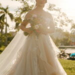 O momento em que Isa apareceu, vestindo um deslumbrante modelo princesa da La Modelista, foi um daqueles instantes que tiram o fôlego. O vestido de noiva perfeito, com um lindo decote frontal e uma saia divina, a transformou em uma verdadeira princesa moderna. Cada detalhe refletiu a sua personalidade única e o seu sonho de um dia encantador.