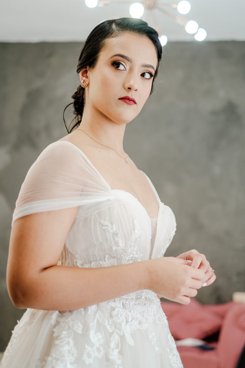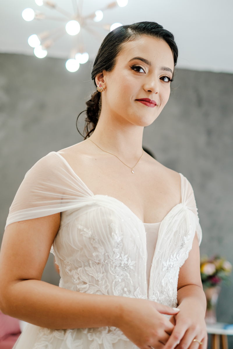 O momento em que Isa apareceu, vestindo um deslumbrante modelo princesa da La Modelista, foi um daqueles instantes que tiram o fôlego. O vestido de noiva perfeito, com um lindo decote frontal e uma saia divina, a transformou em uma verdadeira princesa moderna. Cada detalhe refletiu a sua personalidade única e o seu sonho de um dia encantador.